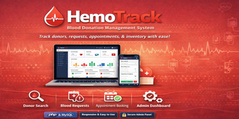 HemoTrack. A PHP/MySQL blood donation management system for tracking donors, requests, appointments, inventory, and admin workflows.