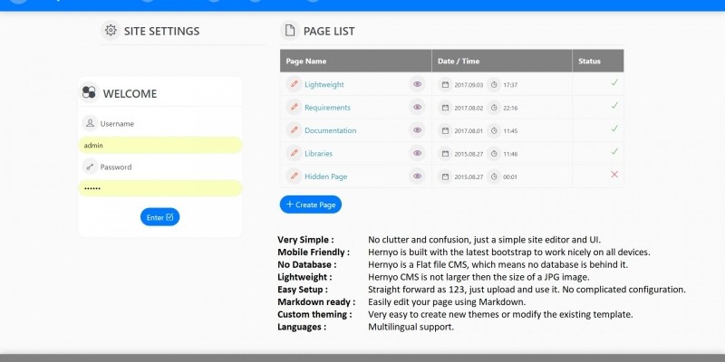 Henry CMS - Lightweight CMS Without Database. Simple and Lightweight Flat-file CMS.Hernyo CMS is a flat file system (No database) and the size of an image.
