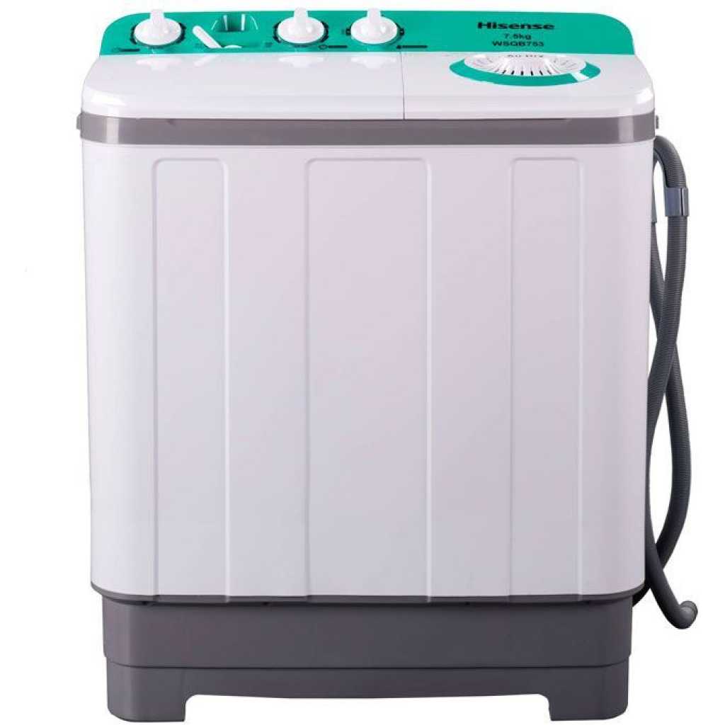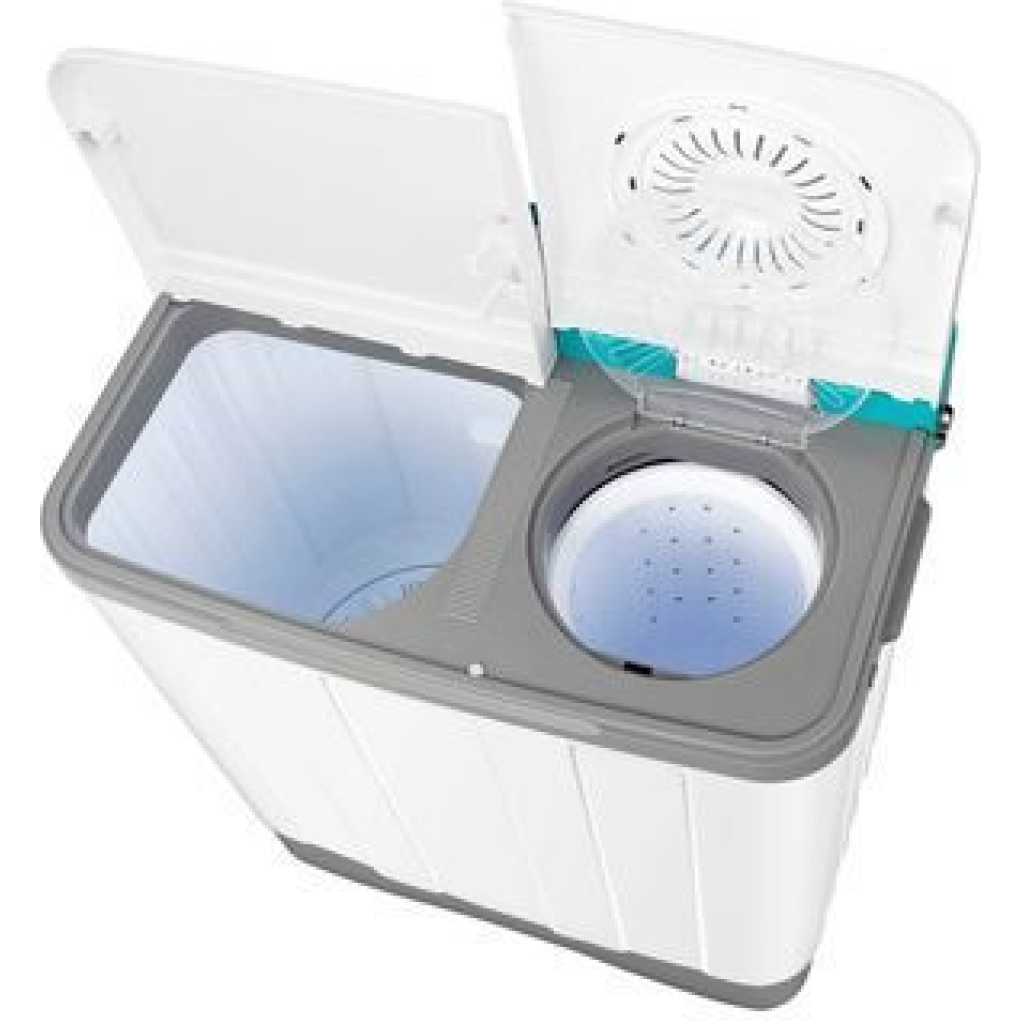 Hisense 10kg Twin Tub Top Loading Washing Machine – White The Hisense 10kg twin tub semi-automatic washing machine comes with a spin dryer. Featuring a wash and spin capacity of 10kg, and a water-proof and rust-proof full plastic body. It also features a water selector, a lint filter, and a user-friendly control panel. Built To Last: Constructed of High-density plastic body + Aluminum pump + Upgraded motor it is well built to use for years. Easy to move and transport anywhere, its lightweight and space-saving design allows it to easily fit in a bathroom or closet, ideal for dorms, apartments, condos, motor homes, RV’s, camping trips, or anywhere with limited space! Energy & Money Saver: This washing machine washes and dehydrates, the clothes come out nearly dry after using the spinner. Designed to save time and money with two built-in units, one tub for washing clothes and a separate tub for spinning out excess water. This washing machine is perfect for those with a need to multi-task, save space, and may want to save themselves a trip to the expensive laundromat. No more costly trips to the laundromat. Energy-efficient operation saves on utility bills Compact & Large Load Capacity: This washing machine with the honeycomb-shaped inner tub can load 11lbs laundry at one time which is big enough for several items at once and even for larger garments like pairs of jeans or bed sheets, meanwhile compact appearance allows you easily move the washing machine in your home or department. True Rinse Technology & Smart Gravity Drain – No more poor rinses. Our True rinse technology delivers the best rinsing results ever, without wasting water. It includes 2 deep rinses on all cycles. And the maximum water level means the tub is full of water up to the top. Small sink? NOT A PROBLEM! The gravity drain was meticulously calculated to drain the washer with pauses, it means a normal bathroom sink will never overflow. Powerful Cleaning: Our washing machine has separate timer control settings for washer and spinner operations. Washer timer for 15 min and the spin timer to 5 minutes per load. Features a drain tube – allows you to drain out dirty water directly, which is suitable for most apartments. Note: The spin dryer can not dry the clothes, still need to air or use the dryer to dry the clothes. If the product has any issues, please feel free to contact the seller to get help! Essential for every home, this semi-automatic washing machine combines powerful performance with an easy-to-use design that makes your laundry care easy. Its well-placed control knobs help you adjust the intensity of the wash for different fabrics, ensuring thorough wash yet gentle care of your clothes. Key Features: Hisense 10kg Twin Tub Top Loading Washing Machine – White 10kg twin tub washing machine Roller jet 3 wash program Lint filter Rust proof body Twin Tub Classic Design White Color Water Selector User Friendly Control Panel Washing & Spinning Switch Draining
