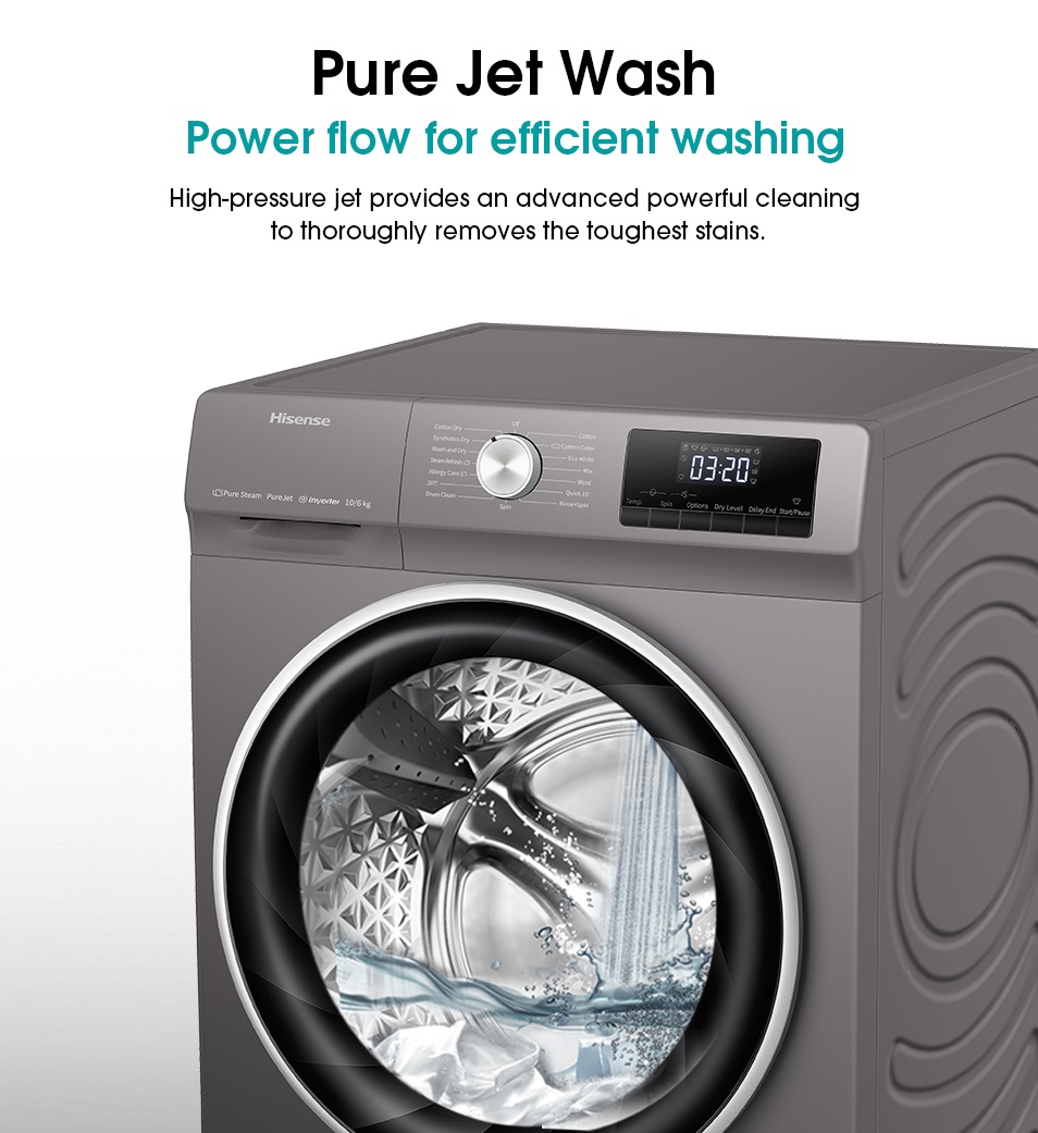 Hisense 10kg Washer And 6kg Dryer Washing Machine WDQY1014EVJM; 1400rpm, A+, – Grey