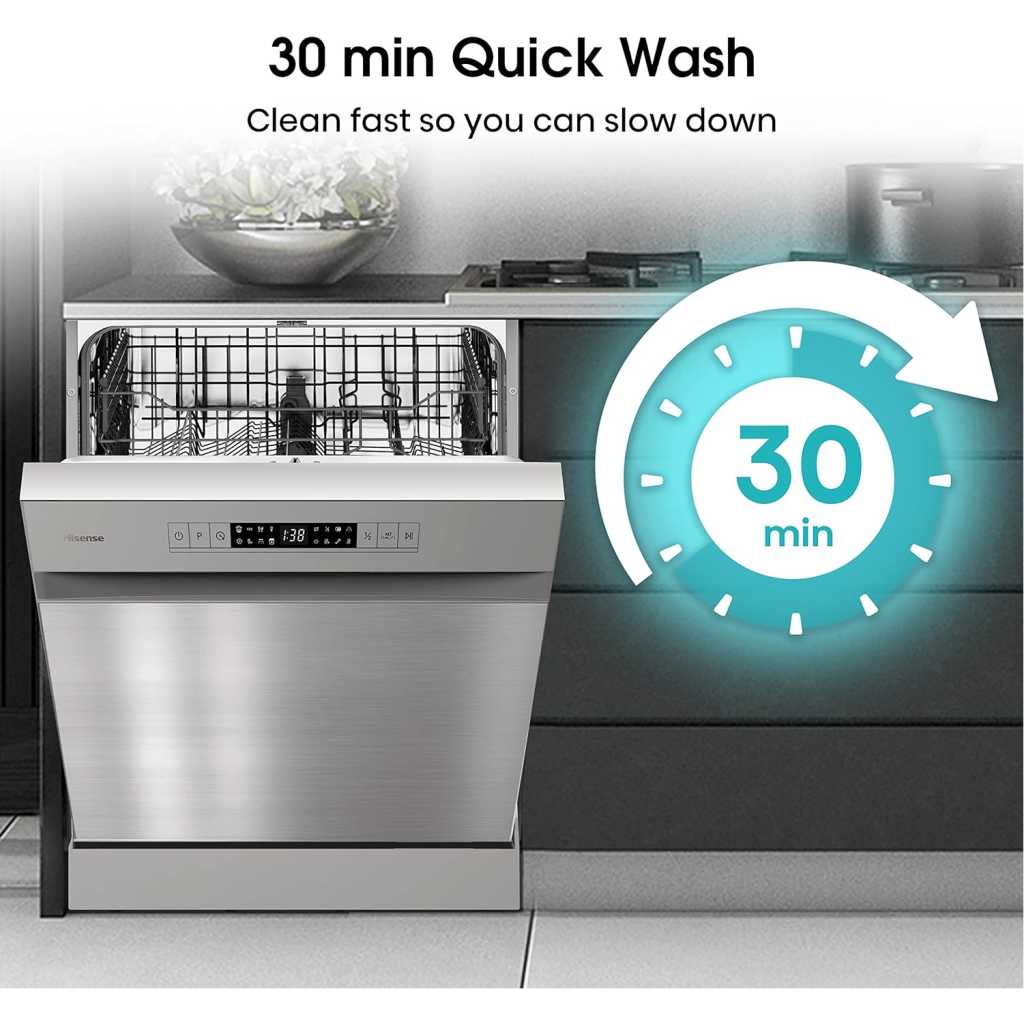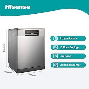 Hisense 15 Place Settings Dishwasher (HS623E90G, Silver, Stainless Steel, Inbuilt Heater, Quick Wash). From the manufacturer