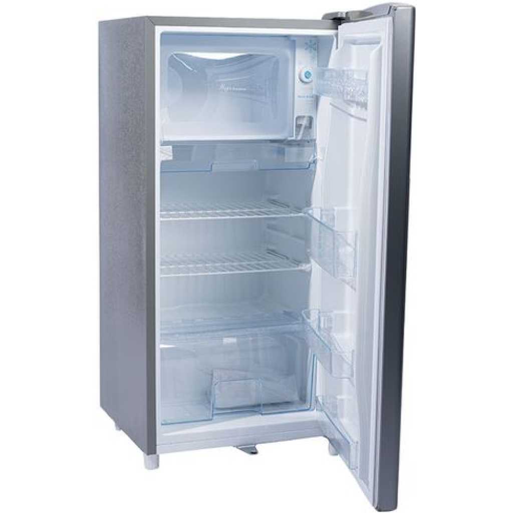 Hisense 195 – Liters Single Door Refrigerator, Silver – RR195DAGS 195L Fridge 195L SINGLE DOOR SILVER FRIDGE – RR195D4AGN With an optimized system design, enjoy a quieter life with low noise operation from your Hisense Refrigerator RR120DAGS. This product has a removable multiple-sealed door that can effectively isolate external heat and is also easy to clean. This product also has a multi-air flow system that distributes cold air evenly at each corner so that food quickly reaches the ideal storage temperature. Features The use of the no frost air cooling technology eliminates the hassle of manual frost removal and provides better freezing. The even air flow distribution allows foods to stay fresh longer in a no frost environment. The humidity of the crisper can be changed depending on the type of vegetable being stored. Reliable shelves The tempered glass provides a higher load-bearing capacity and is not easily broken as it is four to five times stronger than regular glass. However, if the glass does break, it is designed to not break to sharp shards like standard glass would, making it a much safer alternative. The fully adjustable glass shelving is structured so that when a beverage is split on the shelf, it will not touch the food stored on other shelves. Save energy and the environment Enjoy the benefits of Hisense’s fluorine-free design with high efficiency and low carbon emission. It adopts an environment-friendly, fluorine-free refrigerant and optimum pipeline design that provides refrigeration efficiency. The well-designed, exterior body and state-of-the-art ultra-micro pore foaming technology effectively reduces refrigeration loss. Grab this deal from TilyExpress Uganda at unbeatable prices with doorstep delivery. Brand: Hisense Gross Volume: 195 Litres Gross Rated Volume: 158 Net Rated Volume:150 litres Model: RR195D4AGN Max Gross Weight: 32 Kg No Frost System: No Refrigerator Type: Single Door Key Features: Hisense 195 – Liters Single Door Refrigerator, Silver – RR195DAGS 195L Fridge Brand : Hisense Gross Volume : 195 Litres Gross Rated Volume : 158 Net Rated Volume :150 litres Model : RR195D4AGN Max Gross Weight : 32 Kg No Frost System : No Refrigerator Type : Single Door