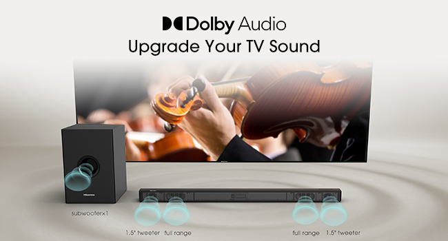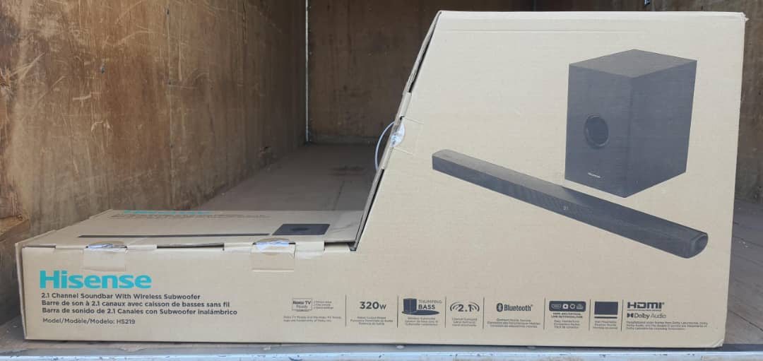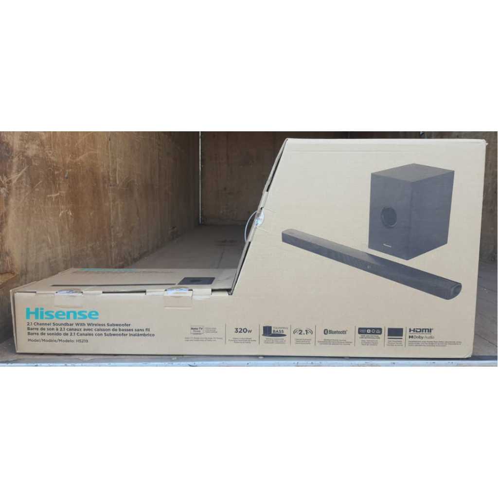 Hisense 2.1 Channel Sound Bar HS219 With Wireless Subwoofer, HDMI, UDB, AUX, Optical, Bluetooth, Dolby Digital, Bass. From the manufacturer