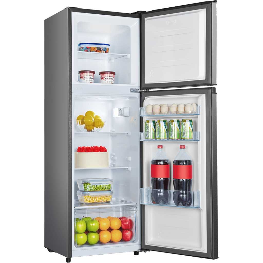 Hisense 225L Fridge, H225TTS | (Combi) Double Door Refrigerator – Platinum Silver. Hisense H225TTS Double Door Refrigerator- 225L – Silver With an optimized system design, enjoy a quieter life with low noise operation from your Hisense Refrigerator H225TTS This product has a removable multiple-sealed door that can effectively isolate external heat and is also easy to clean. This product also has a multi-air flow system that distributes cold air evenly at each corner so that food quickly reaches the ideal storage temperature. Features The use of the no-frost air cooling technology eliminates the hassle of manual frost removal and provides better freezing. The even airflow distribution allows foods to stay fresh longer in a no-frost environment. The humidity of the crisper can be changed depending on the type of vegetable being stored. Reliable shelves : The tempered glass provides a higher load-bearing capacity and is not easily broken as it is four to five times stronger than regular glass. However, if the glass does break, it is designed to not break to sharp shards like standard glass would, making it a much safer alternative. The fully adjustable glass shelving is structured so that when a beverage is split on the shelf, it will not touch the food stored on other shelves. Save energy and the environment: Enjoy the benefits of Hisense’s fluorine-free design with high efficiency and low carbon emission. It adopts an environment-friendly, fluorine-free refrigerant and optimum pipeline design that provides refrigeration efficiency. The well-designed, exterior body and state-of-the-art ultra-micro pore foaming technology effectively reduce refrigeration loss.