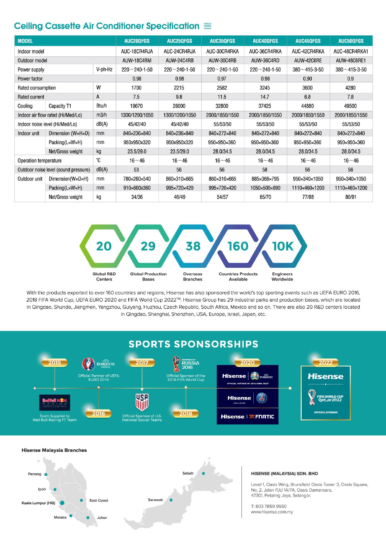 Hisense 24000 BTU Cassette Air Conditioner, Ceiling Air Conditioner – White. Product Warranty Retail : 5 Years Compressor Warranty + 2 Years General Warranty Online Purchase: 5 Years Compressor Warranty + 2 Years General Warranty Key Features: Hisense 24000 BTU Cassette Air Conditioner, Ceiling Air Conditioner – White. Ideal Wind: 360-degree round airflow design. WiFi Control Fivefold evaporator A backward centrifugal fan ensures excellent air supply with high efficiency. Brand new silent duct design.