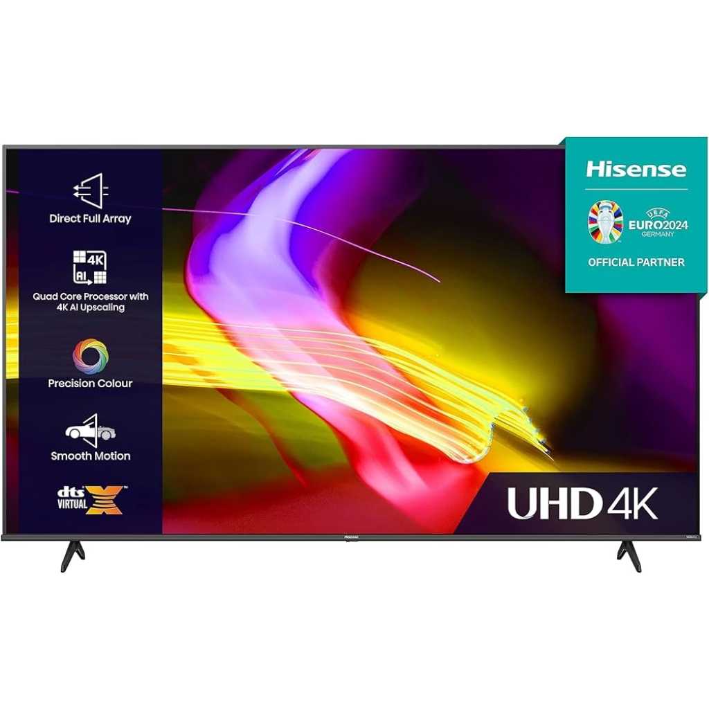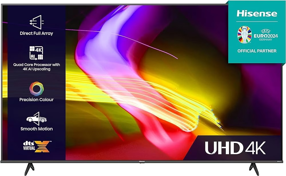 Hisense 50 – Inch 4K UHD Smart TV – VIDAA-U Smart TV, Bluetooth, Any View Cast (Frameless) VIDAA TV is a total entertainment hub and brings comprehensive content, including more than 4,000 apps and games to the big screen in your home to watch and discover movies, tv shows, music, and games | Google Assistant and Chromecast built-in TV Dimensions: Without stand – 43.9″ W x 25.5″ H x 3.2″ D | With stand – 43.9″ W x 27.9″ H x 8.9″ D | Screen size – 49.5” measured diagonally | Voltage – 120V | Supports Dolby Atmos and Bluetooth | No picture-in-picture capability The TV’s 4K Ultra HD delivers more than four times the resolution of a regular 1080p high-definition screen with a powerful, full array LED backlight at work to create a sharper, more colorful picture. Mount pattern: VESA 300 x 200 The H65 is music to your ears and eyes— Thanks to built-in Bluetooth connectivity | This universal, invisible technology expands your entertainment options by wirelessly connecting a compatible soundbar, headphone, or stereo components to your TV Inputs/outputs: HDMI – 3 | USB – 2 | Ethernet – 1 | RF Antenna – 1 | RCA Composite Video Input – 1 | L/R Audio Input for Composite – 1 From the manufacturer Key Features: Hisense 50 – Inch 4K UHD Smart TV – VIDAA-U Smart TV, Bluetooth, Any View Cast (Frameless) Brand: Hisense Resolution: 1920×1080 Display Size:50” Color:Black