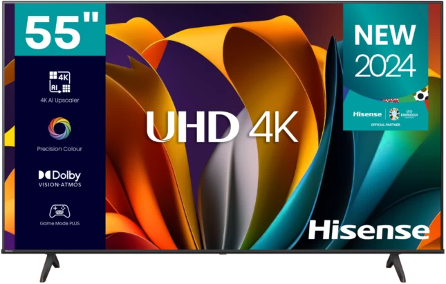 Hisense 55 – Inch 4K Ultra HD VIDAA Smart TV, Airplay 2, AI 4K Upscaler, Dolby Vision, With In-Built Free To Air Decoder, Bluetooth, HDMI, Chromecast, USB, Netflix, Youtube – Black