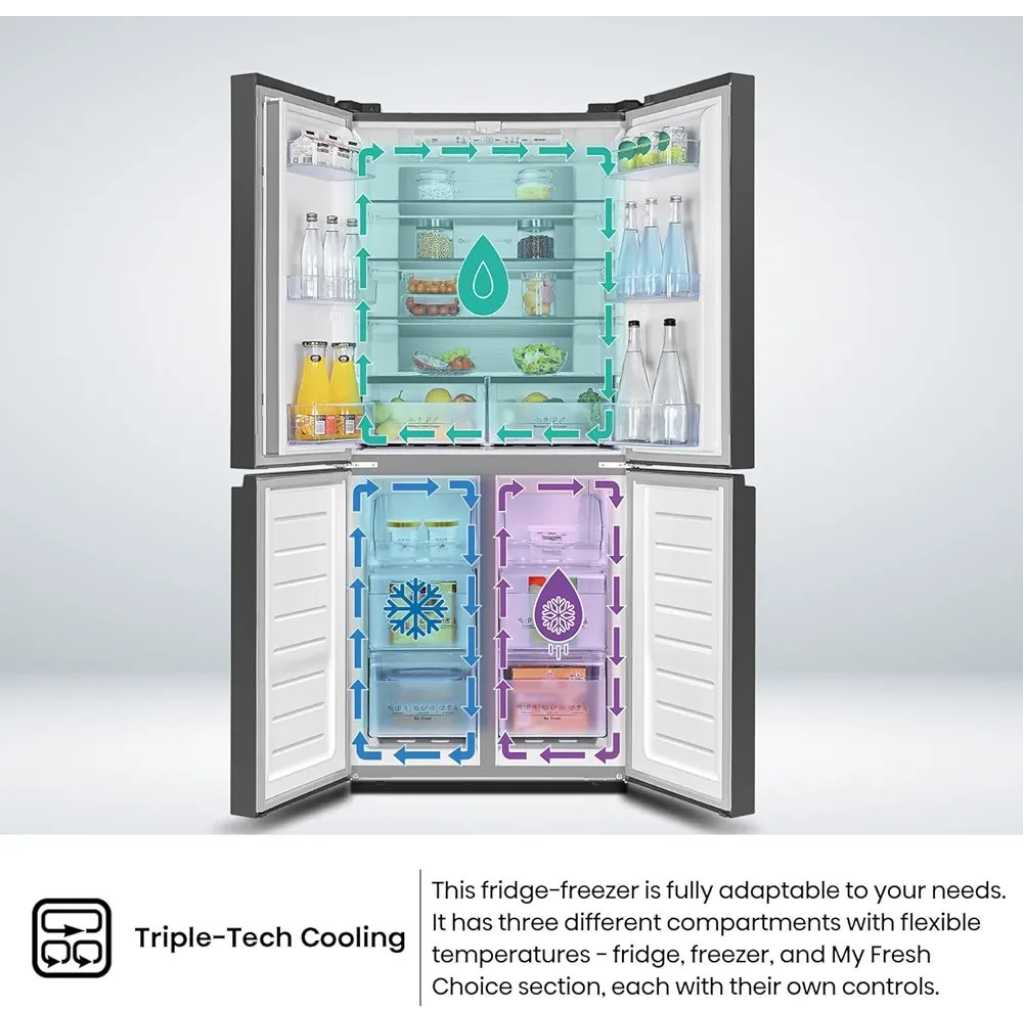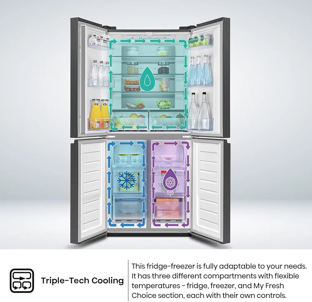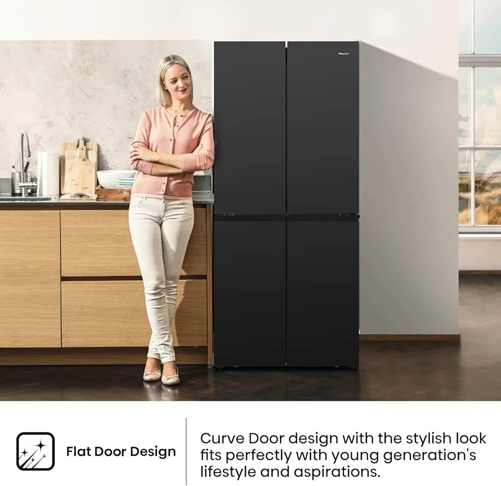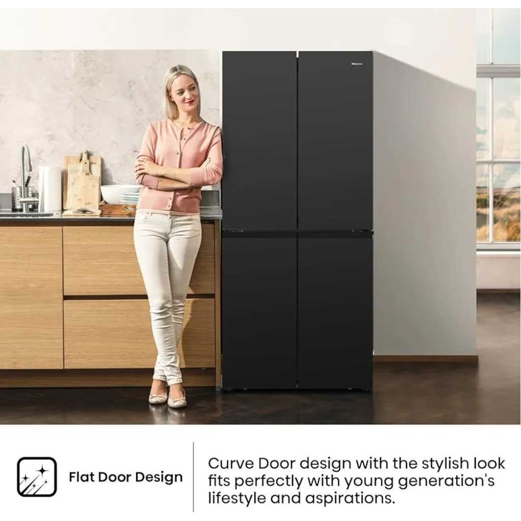 Hisense 610 – Litres Multi Door Frost Free Fridge – Black Glass Finish Hisense 610L 4 Door Glass Black Finish Refrigerator – Black This impressive American style multi door fridge freezer is abundant in space, as well as style and functionality. With its 4 large doors it offers you complete flexibility, no matter the size of your family. Controlled by the integrated LED display with Touch Electronic Control, The Triple Zone Cooling with My Fresh Choice, super cool and super freeze functions and Multi-Function Pantry allow you to tailor the way you chill or freeze your food, depending on your needs. Choose how you chill your food. With a dedicated pantry drawer, this is an ideal area to store all your deli foods. Inverter technology for energy savings and a longer lasting appliance.