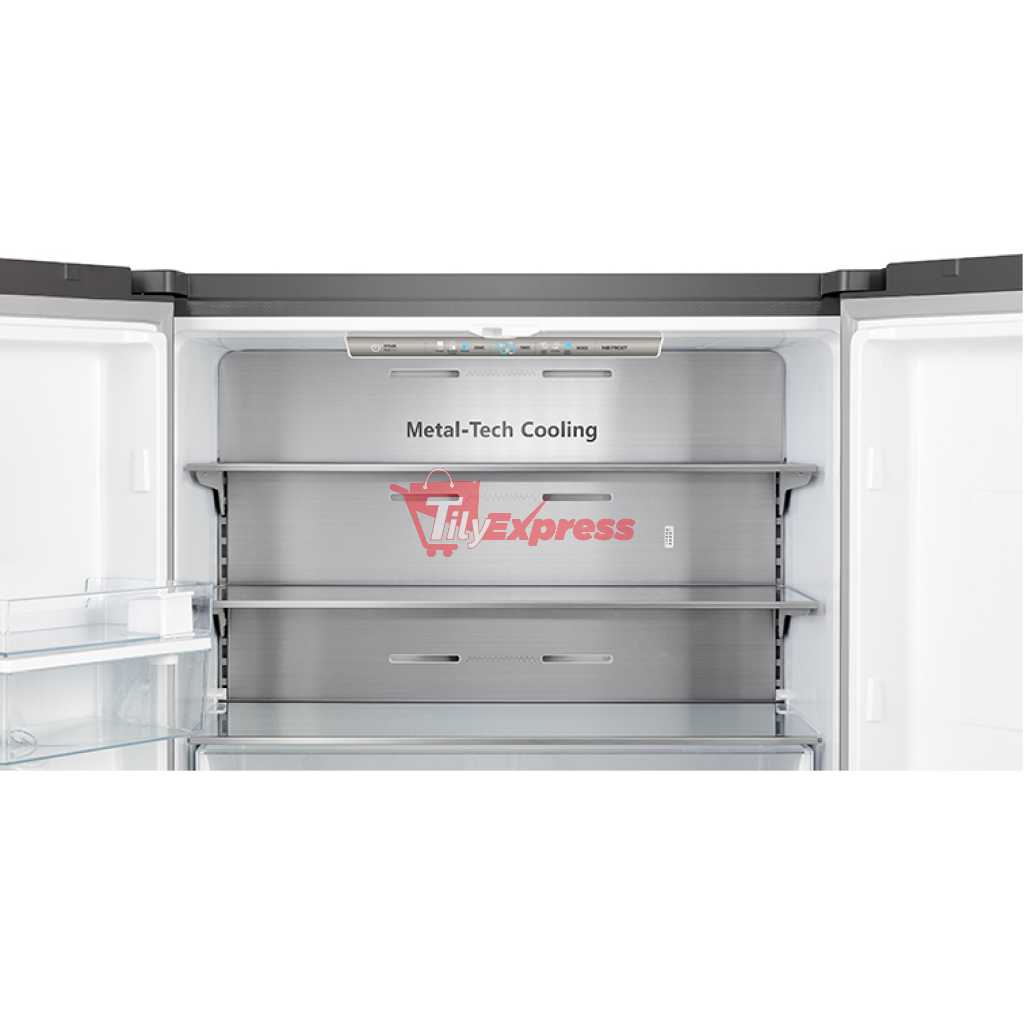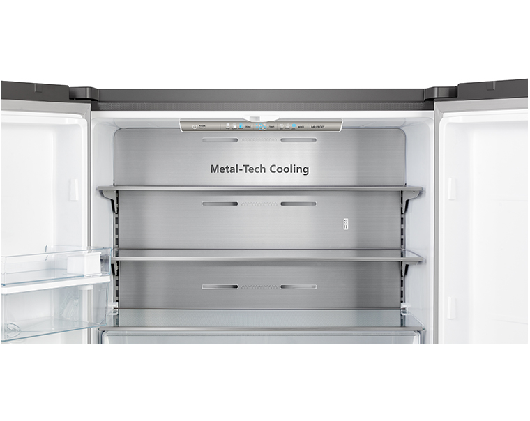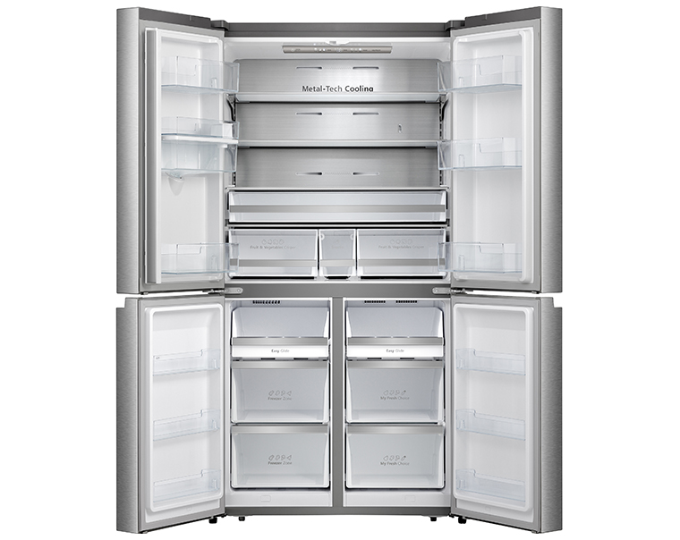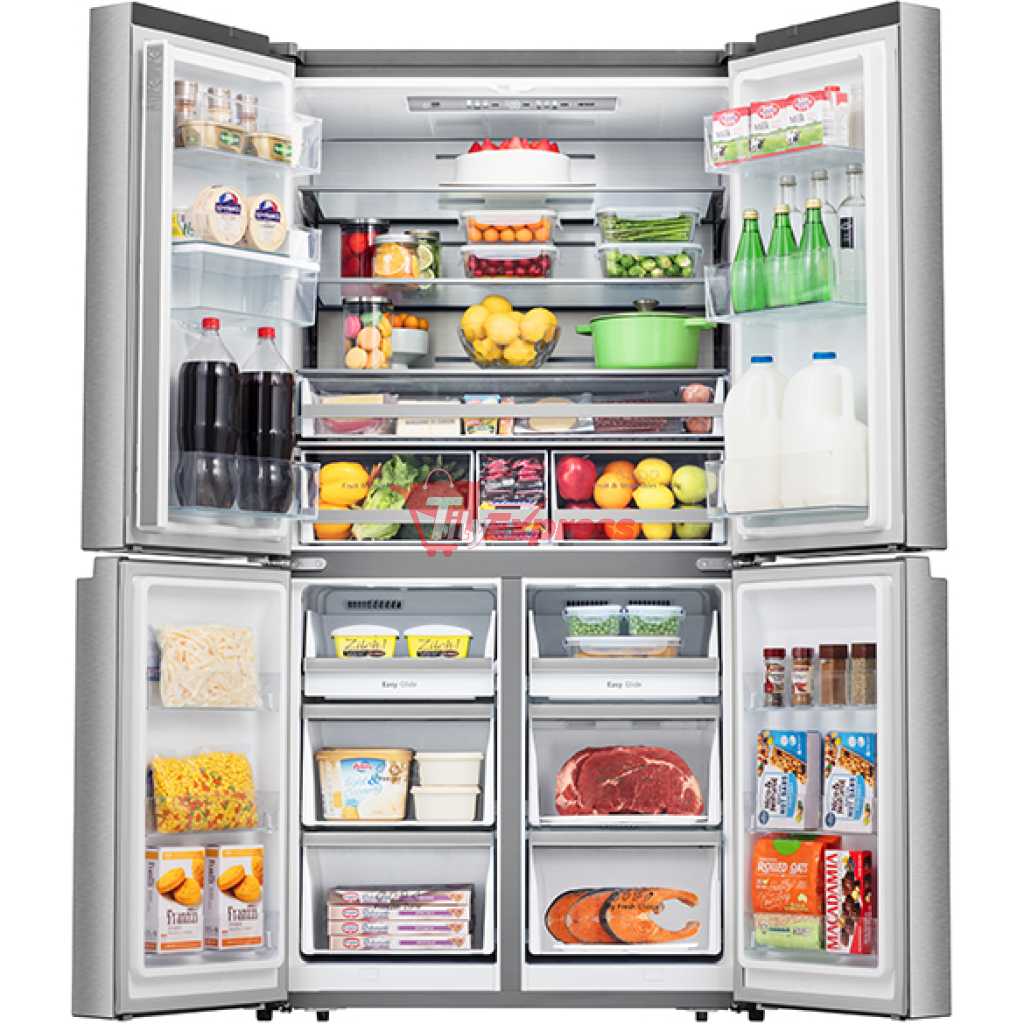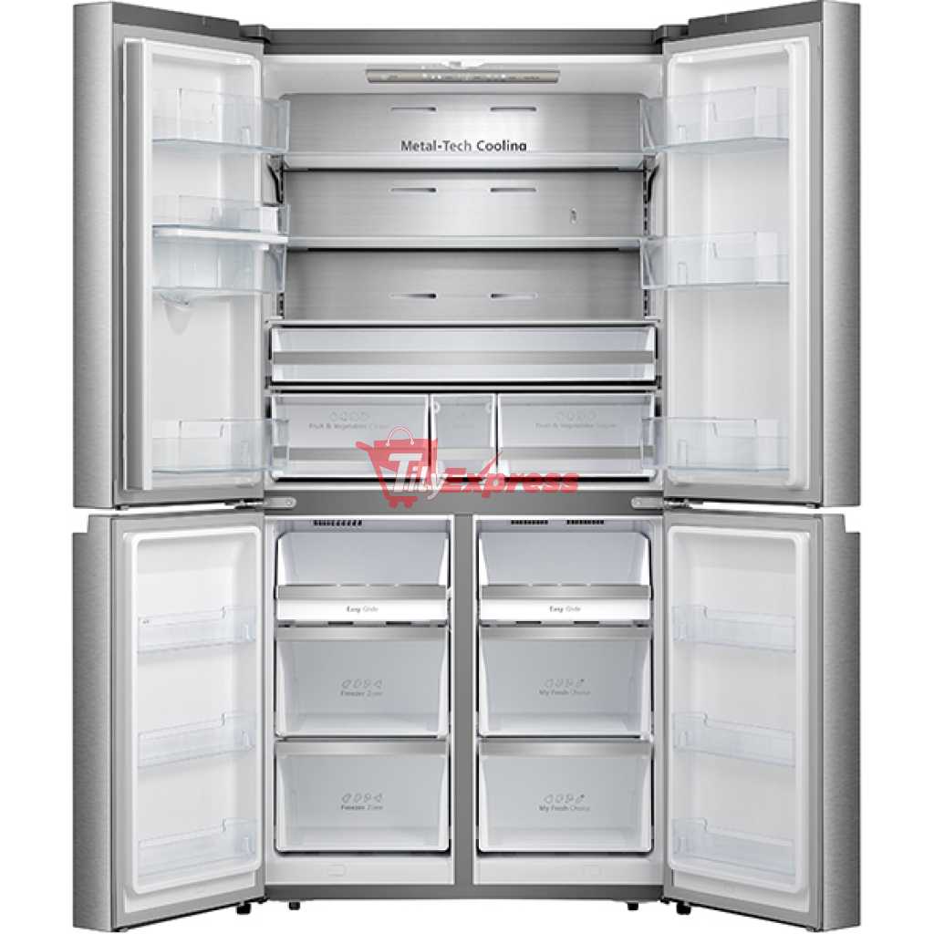 Key Features: Hisense 730 – Litre French Door Fridge RQ-73WC4SW1; 4-Doors, Frost Free Refrigerator With Water Dispenser – Stainless Steel. Total No Frost Multi Air Flow System Touch Electronic Control Fashionable Handle Design Water Dispenser Folded Coke Rack Modern Decoration Inside LED Lighting Super Cool Function Super Freeze Function Alarm Function