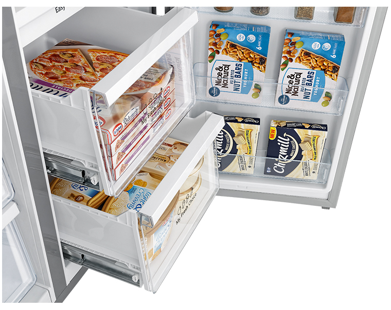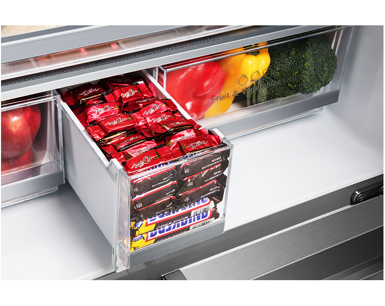 Hisense 730 – Litre French Door Fridge RQ-73WC4SW1; 4-Doors, Frost Free Refrigerator With Water Dispenser – Stainless Steel. DUALTECH COOLING The Dualtech cooling system in the fridge and the freezer maintain the ideal humidity level in each compartment, preventing odour transfer and stopping the stored food from drying out. WATER DISPENSER This water dispenser is fully integrated into to the door and provides chilled and refreshing water whenever you want it. Its non-plumbed design allows you place this refrigerator anywhere in your kitchen. LED LIGHTING LED lights placed on both sides or at the top ensure optimal illumination for every corner of the fridge. They are durable and cheaper to run than traditional bulbs. TOTAL NO FROST With total no frost technology, there is no ice build-up in the appliance, making defrosting a thing of the past. It will keep your cherished food fresher and more nutritious over a longer period of time. SUPER FREEZE FUNCTION This function makes freezing ultra quick. This energy-saving function can lock vitamins in your food and helps to keep the original flavour as much as possible. This is due to the temperature dropping to at least -24℃ quickly and rapidly creates cold air to preserve fresh items. SUPER COOL FUNCTION The super cool function can cool down the internal temperature quickly and keeps the fridge compartment to a regular +2℃ for 6 hours. This is great to help keep the flavour, color and nutritional value of fresh food. MOISTURE FRESH CRISPER A Moisture Fresh Crisper is a fruit and vegetable box with a moisture adjustment system. It maintains the humidity perfectly, which can be simply adjusted with a slider, depending upon the different food’s storage requirements.