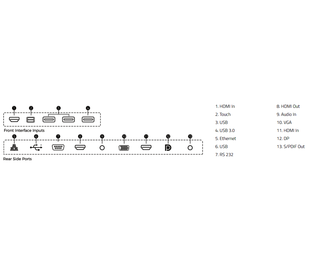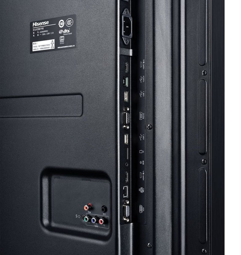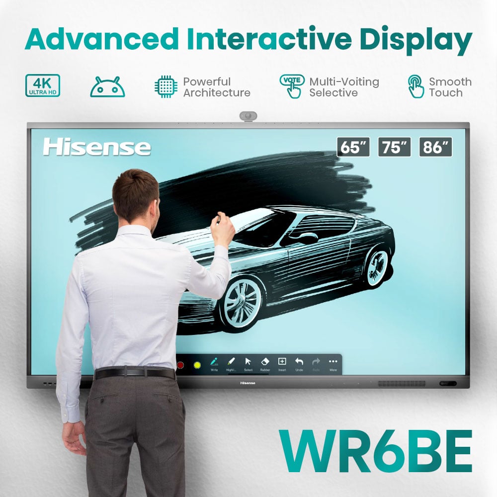 Hisense 86 – Inch Touch Interactive Conference LED Touch Screen 86WR6BE, 4K Smart LED Interactive Commercial Display Screen – Black . 4K Ultra HD: The 4K Ultra HD picture quality* ensures perfect colour and rich details in all possible broadcasting surroundings, ranging from shops, to restaurants and office buildings. Screen transmission: The WR series interactive digital boards can wirelessly connect with two or more auxiliary screen devices. Near-Field Communication (NFC) touch transmission and A&C screen transmission simplify this process. Automatic sound bar: The power of the sound bar can be turned on or off simultaneously with the interactive digital board. Creating an instant auditive experience. Intuitive controls: With your fingers you will, among other things, be able to switch between tasks, annotate content from any source, make handwritten notes, zoom in / out and undo changes. Tempered Glass: Hisense’s WR series have heat treated tempered glass preventing any damage to the touch panels. Comfortable viewing: Each of our Interactive Digital Boards has a filter to effectively reduce blue light so your eyes remain comfortable even when using the screen for longer periods of time. Homepage article bar: An easy to find and use homepage article bar enables quick access to functionalities such as a calculator, voting machine and magnifying glass. Plug-in camera (purchased separately): A plug-in camera with an ultra wide 120° angle facilitates videoconferencing. Thanks to a 4K monitoring image sensor, even people in dark light will be visible and vivid. Array microphones: Six array microphones are able to folter out any ambient noise. As a result you will have an optimal video conference experience without auditory distraction. Collaborative interaction: The touchscreen recognizes up to 20 touches at once which is ideal for simultaneous use by meeting participants. Powerful Architecture: Expect unstoppable performance by an octa-core processor and 3+32GB large memory. Anti-Glare: Optical technology diffuses mirror-like reflections and bright lights to help keep what’s on your screen clear and visible. Real-time comments: Spectator comments will pop up onscreen in real time. Also, they will scroll through the page, so no remarks are missed. All without interrupting the person handling the screen. Dynamic graphics: Drawn graphics are not only colorful, but can also be easily stretched, rotated, moved, or copied. You can also change the color of objects by selecting them. Connectivity 1. HDMI In 2. Touch 3. USB 4. USB 3.0 5. Ethernet 6. USB 7. RS 232 8. HDMI Out 9. Audio In 10. VGA 11. HDMI In 12. DP 13. S/PDIF Out Smart Tools For Effective Collaboration