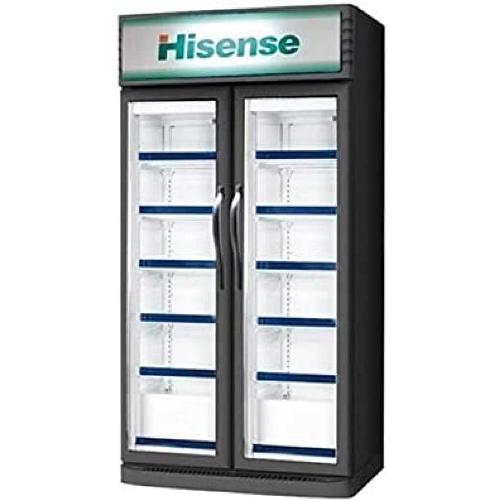 Key Features: Hisense 990 Liter Double Door Display Cooler FL99WCD1; Vertical Display Chiller, Double Display Showcase Refrigerator. Hisense Showcase Chiller 990 Liter Double Doors Black Model FL99WCD1 -1 Years Full & 5 Years Compressor Warranty. Capacity – Gross/Net 990/758 Liters Capacity with Energy Efficiency ‘A’ Class. Refrigerant R410a. Operating temperature 0-10 ◦c with No-Frost Technology. Mechanical Temperature Control with adjustable Thermostat Auto Defrost System Integrated Arc Door (One Piece). Fashionable Appearance with Inner Light for Bright Showing. Experience Better Lighting Effect of Vertical Light. Convenience Wheels Design for Easy Moving of whole chiller with one finger only. With self-evaporate Water Disposal Pan on Compressor which is working as coolant to compressor also. Low voltage Start With internal and Bottom Fans to provide higher cooling efficiency With Hot Air Flow to Avoid Water Condensation inside the cabin. Hisense Showcase Chiller 2 Glass Doors for Beverages, Fruits & Vegetables Model FL-99WC/D1 with 1-year Full warranty and 5-Year Warranty. A Double Layer Doors Designed with Environment-friendly Technology. 2 Glass Doors Refrigerator with Durable Wire Shelves. Tempered Glass Door. Product Dimensions ( L x W x H ) 101 x 71 x 206 cm 140kg.