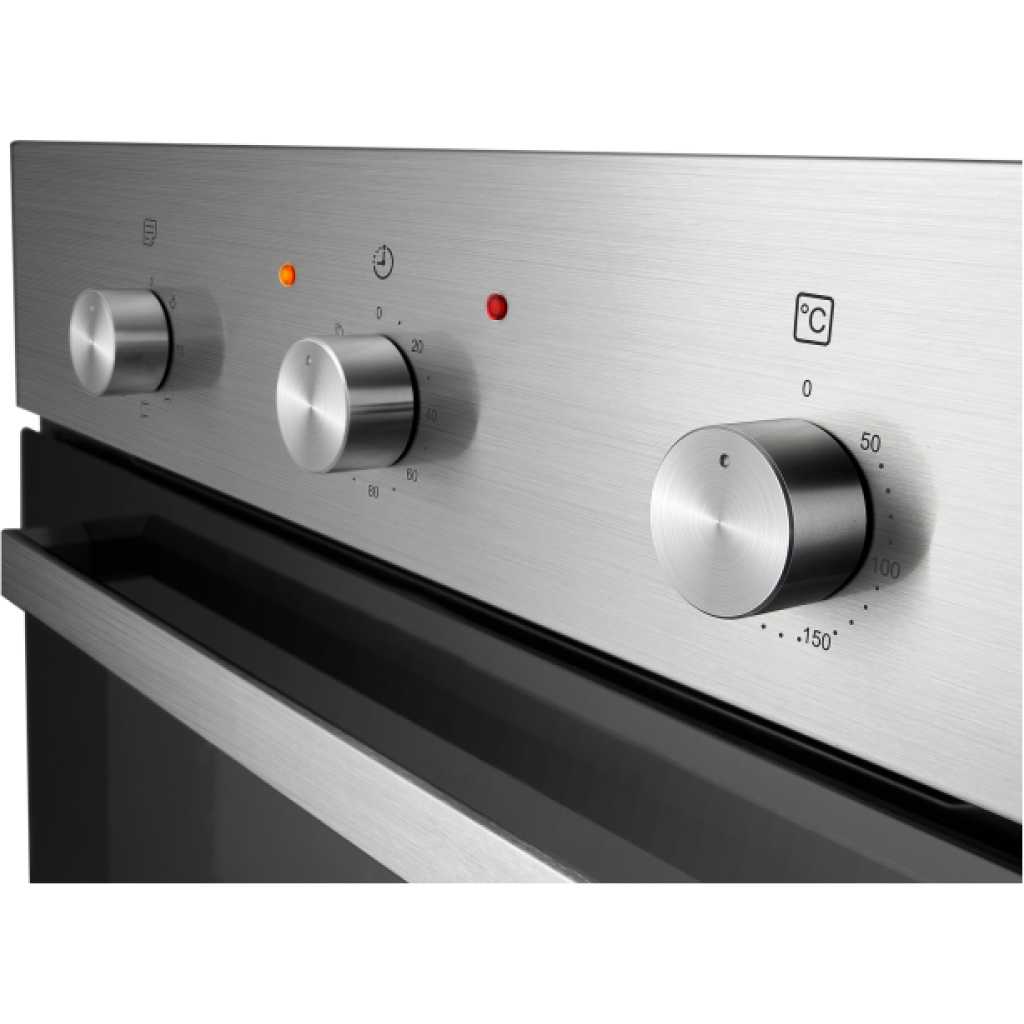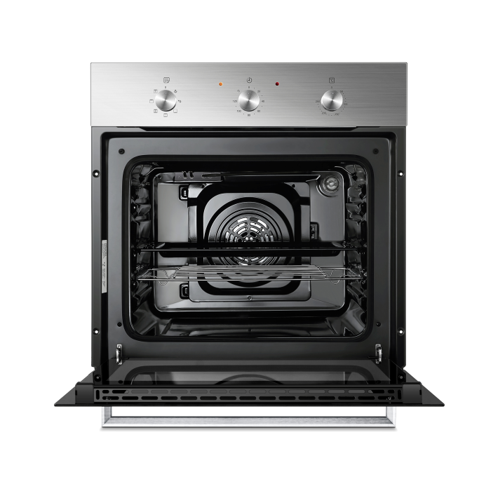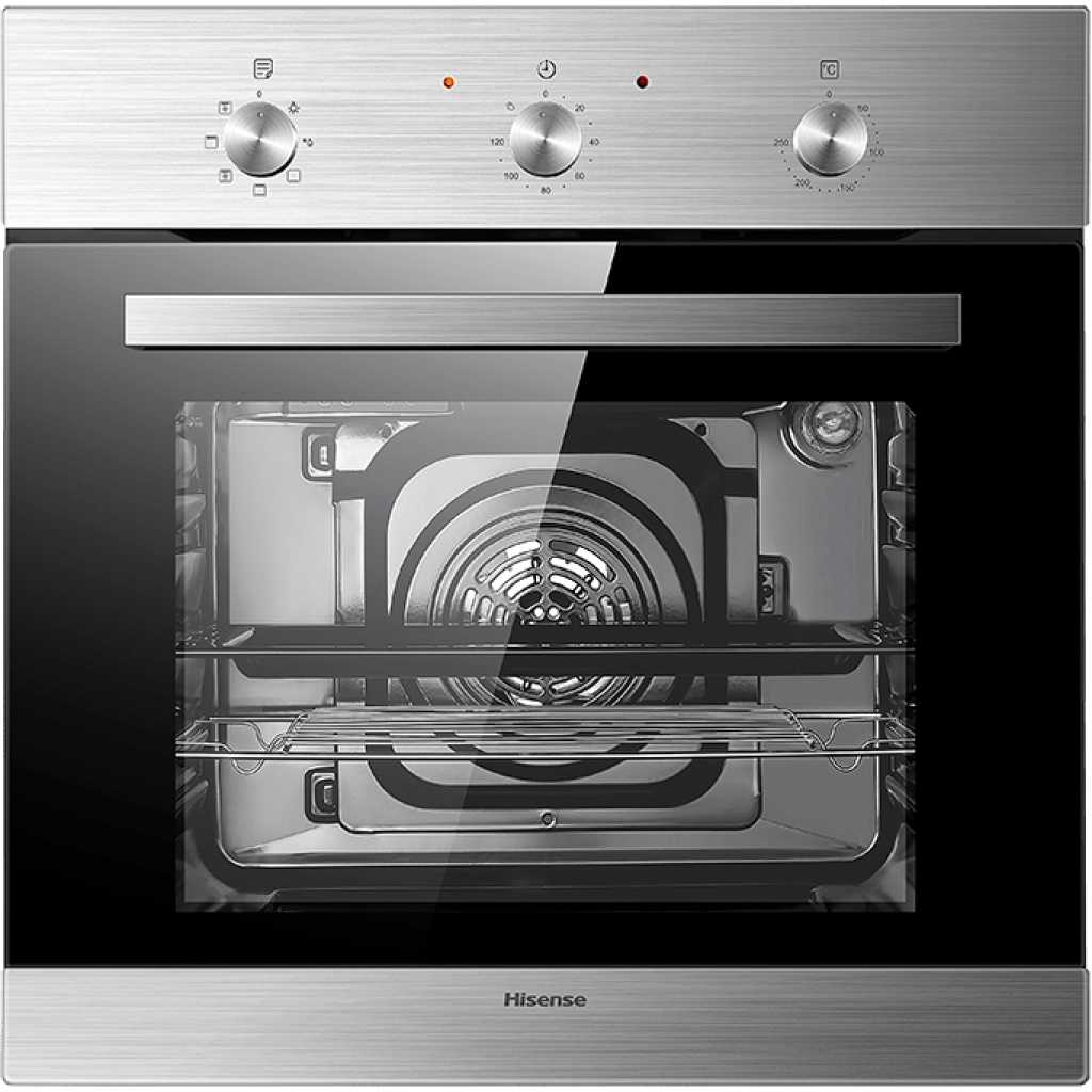 Hisense Built-In Electric Oven With Fan, HBO60203 – Stainless Steel. The Hisense 60cm b uilt- i n o ven with Fan Assist is a stylish addition to your modern kitchen. It features a 61L easy – to – clean oven cavity, a double – layer glass door that prevents the exterior from heating up and it has 6 convenient functions . 6 functions: Defrost, Upper Heat and Bottom Heat, Bottom Heat, Full Grill Heat, Upper Heat and Bottom Heat and Fan Assist, Full Grill Heat and Fan Assist Fan Assist circulates the hot air to help you cook in a cool kitchen ‘A’ Energy r ating saves on power consumption Stylish s tainless s teel f inish Power and temperature i ndicator Internal l ight to see inside easily Temperature range from 50˚ C – 250˚ C 120-minute mechanical timer Aluminium a lloy h andle 5 -s hel f p osition Includes baking tray and grill rack Additional details 61L capacity 220-240V / 50Hz power 2900W 2-year warranty (W)60 x (D)53 x (H)60cm Ensuring safe and secure use of electric ovens For warranty claims, electrical products must be installed by a qualified electrician, and proof of installation is required. Thank you for being responsible! Key Features: Hisense Built-In Electric Oven With Fan, HBO60203 – Stainless Steel. 6 functions: Defrost, Upper Heat and Bottom Heat, Bottom Heat, Full Grill Heat, Upper Heat and Bottom Heat and Fan Assist, Full Grill Heat and Fan Assist Fan Assist circulates the hot air to help you cook in a cool kitchen ‘A’ Energy r ating saves on power consumption Stylish s tainless s teel f inish Power and temperature i ndicator Internal l ight to see inside easily Temperature range from 50˚ C – 250˚ C 120-minute mechanical timer Aluminium a lloy h andle 5 -s hel f p osition Includes baking tray and grill rack