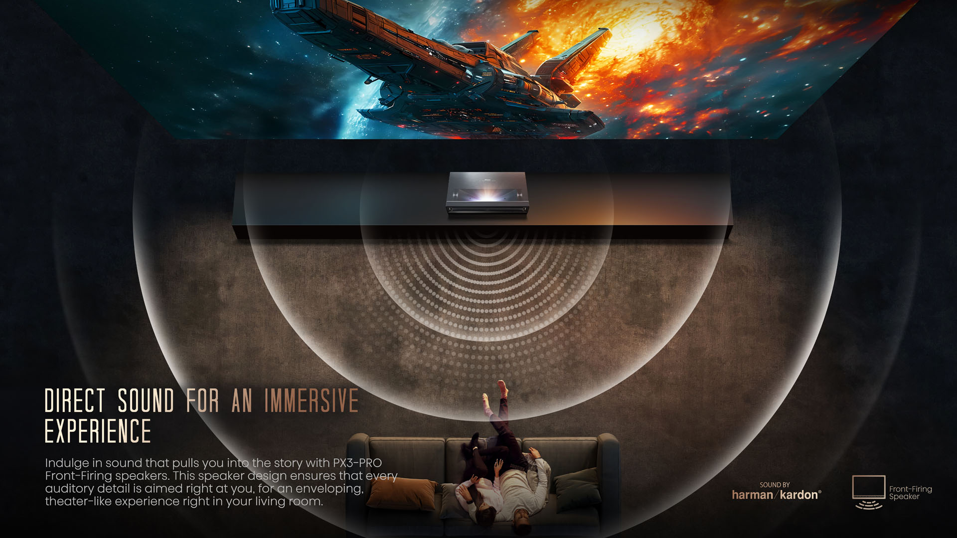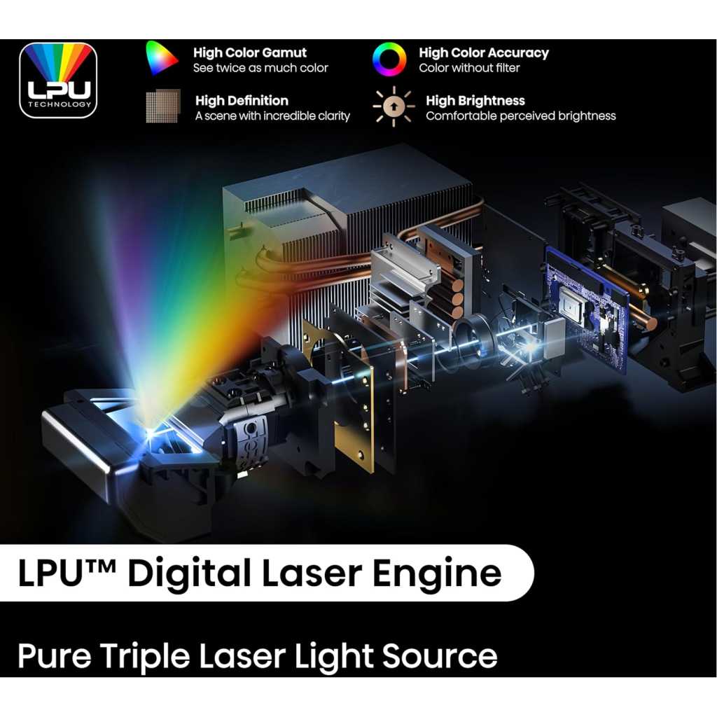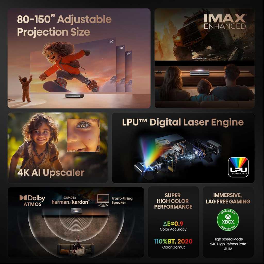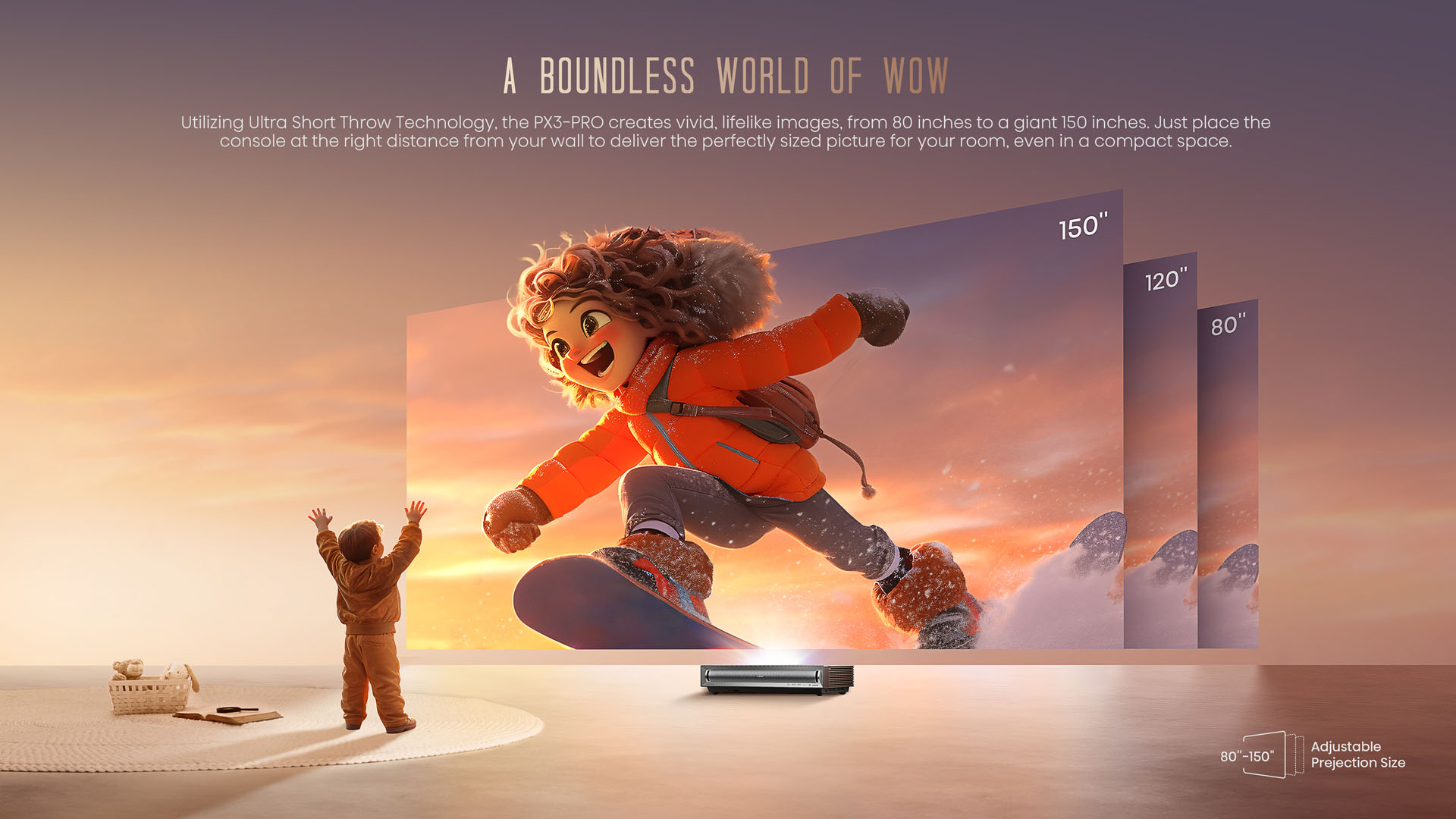 Key Features: Advanced LPU Technology: Through LPU technology, you can see incredibly precise and accurate colors with PX3-PRO. Covering 110% BT.2020 (≈151% DCI-P3) color gamut, PX3-PRO delivers finely tuned contrast, lifelike images, and exceptional color. Ultra-short Throw: Enjoy movies, TV shows and games on the big 150″ screen from just inches away. The World’s First UST Projector Designed for XBOX: Play without screen tearing or lag thanks to HSR 240 high refresh rate and auto-low latency mode. Dolby Vision: Delivers stunningly vivid colors, deeper contrast, and ultra-realistic details, making every moment on screen captivating and immersive IMAX Enhanced: Enjoy Action-packed and Powerful Images. Appreciate all the details IMAX Enhanced provides, and experience the cinema just as the filmmakers intended. 3000:1 Native Contrast: Power up the contrast 3000:1. See darker darks, whiter whites and everything in between, no matter how subtle the transition.