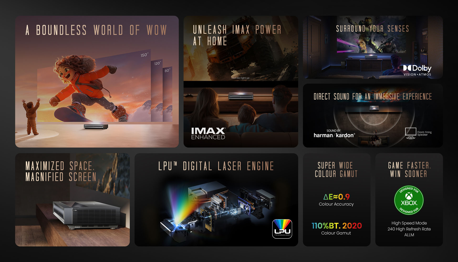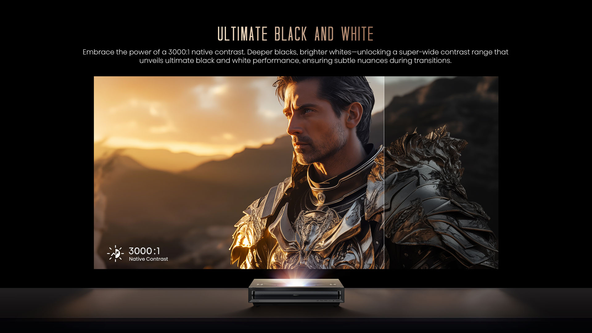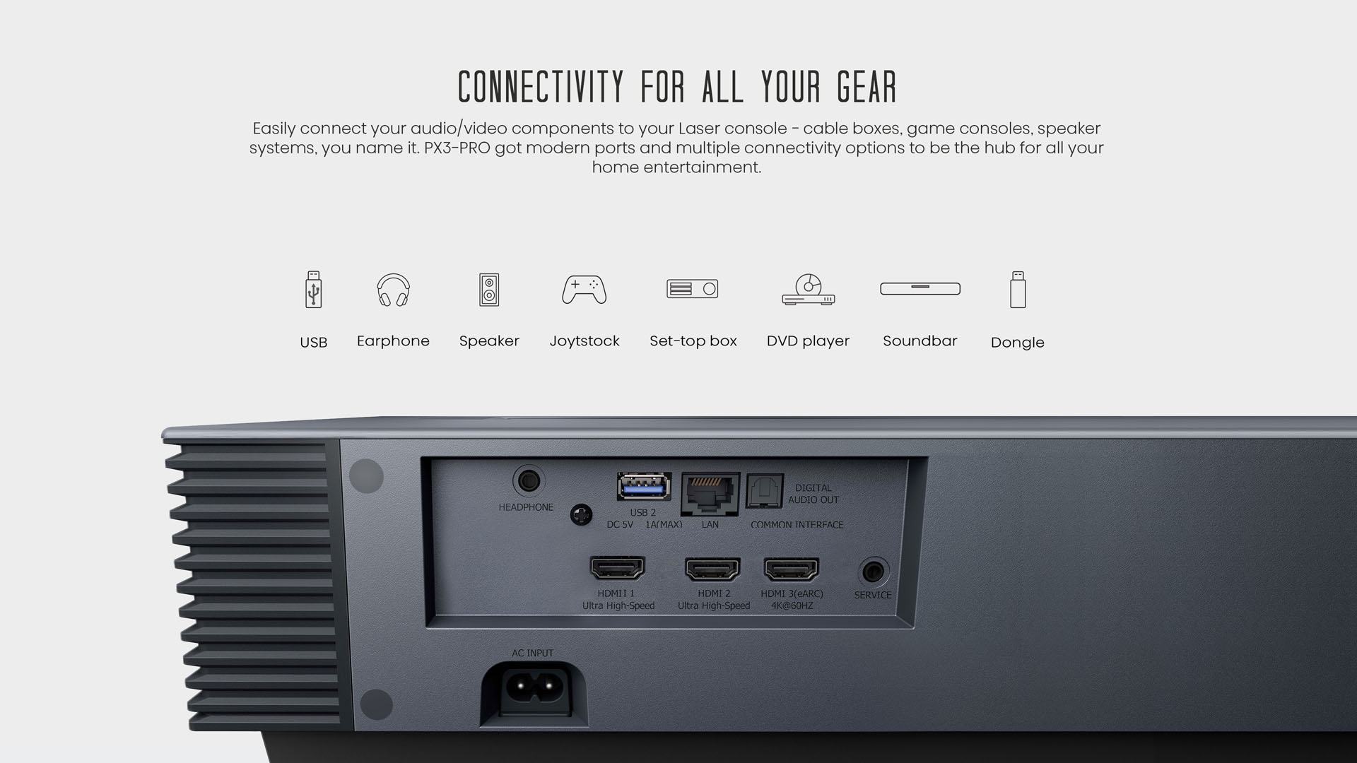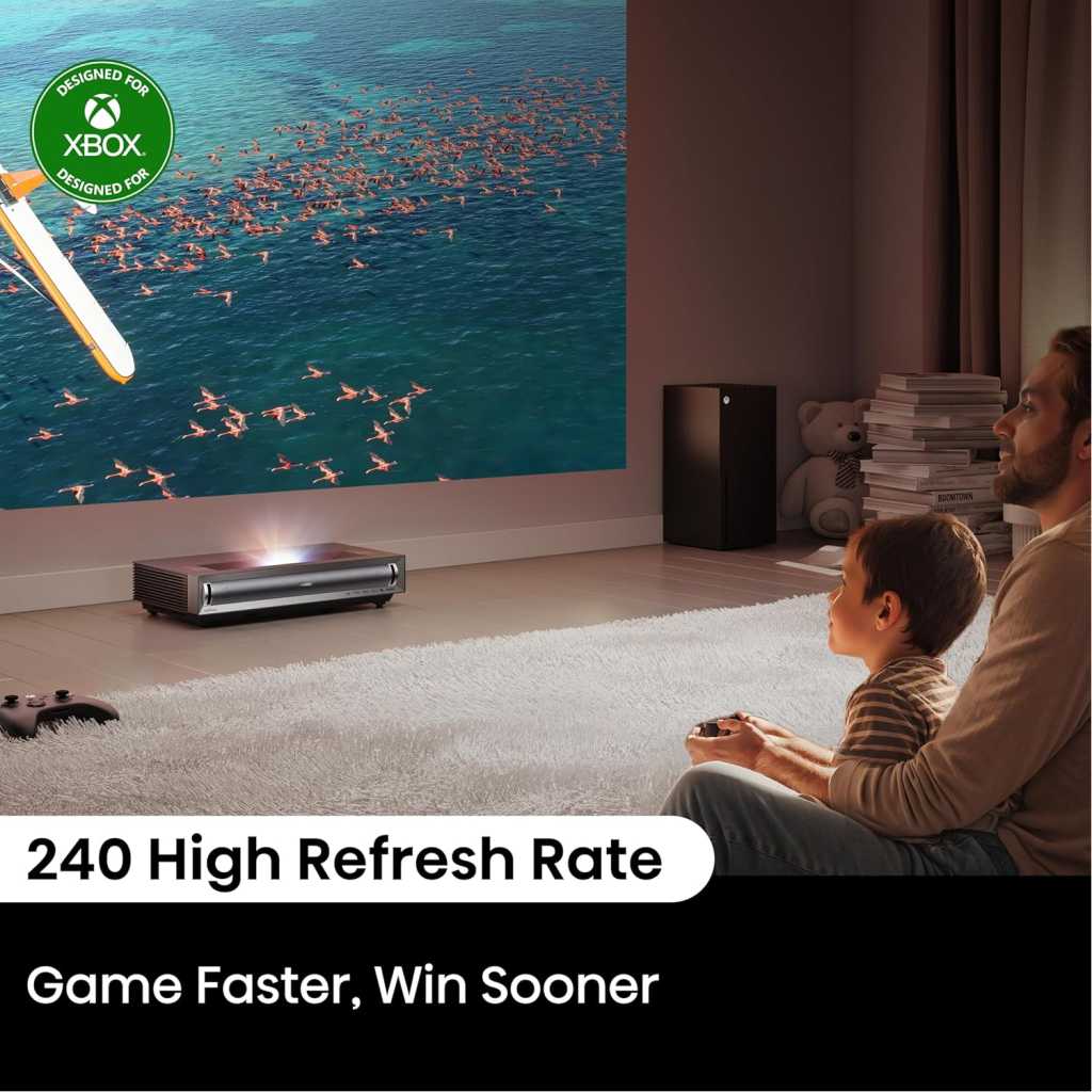 Key Features: Advanced LPU Technology: Through LPU technology, you can see incredibly precise and accurate colors with PX3-PRO. Covering 110% BT.2020 (≈151% DCI-P3) color gamut, PX3-PRO delivers finely tuned contrast, lifelike images, and exceptional color. Ultra-short Throw: Enjoy movies, TV shows and games on the big 150″ screen from just inches away. The World’s First UST Projector Designed for XBOX: Play without screen tearing or lag thanks to HSR 240 high refresh rate and auto-low latency mode. Dolby Vision: Delivers stunningly vivid colors, deeper contrast, and ultra-realistic details, making every moment on screen captivating and immersive IMAX Enhanced: Enjoy Action-packed and Powerful Images. Appreciate all the details IMAX Enhanced provides, and experience the cinema just as the filmmakers intended. 3000:1 Native Contrast: Power up the contrast 3000:1. See darker darks, whiter whites and everything in between, no matter how subtle the transition.