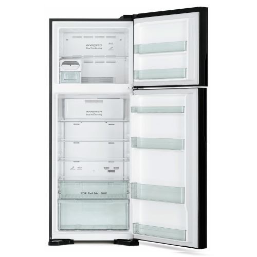 Key Features: Hitachi 460 – Litres Double Door Refrigerator Inverter Compressor RVG700PUN7GGR – Glass Grey 460 Liters Capacity Inverter Compressor Dual Fan Cooling Glass Grey Finish Tempered Glass Shelves LED Light (Fridge and Freezer) Touch Controls Door Alarm Movable Twist Ice Tray