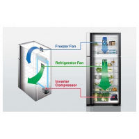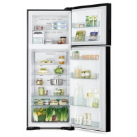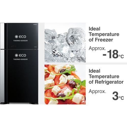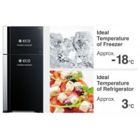 Hitachi 460 – Litres Double Door Refrigerator Inverter Compressor RVG700PUN7GGR – Glass Grey The Hitachi Solution for Powerful Refrigeration Plus Exceptional Energy Saving Dual Fan Cooling Dedicated Fans for each of the Compartments It provides optimum cooling in both the freezer and the refrigerator compartments, something a single fan can’t do. Improved Dual Fan Cooling ensures energy saving and powerful cooling, supported by the Eco Thermo-Sensor in each compartment detecting any temperature changes at all times. High Power Inverter Compressor Capable of providing exceptionally powerful cooling by generating a large volume of chilled air, as well as efficient low power cooling with microcomputer control. Dual Sensing Control Hitachi refrigerators have two Eco Thermo-Sensors, one in the freezer compartment and the other in the refrigerator compartment. The sensors detect any temperature changes separately to enable the ideal temperatures to be maintained in each of the compartments at all times. Energy Saving Controlling how much and to which compartment chilled air is delivered, it assures no wasted energy thus helping it acquire world top class energy saving ratings. Powerful Cooling Even if the ambient temperature reaches as high as 60°C, every corner inside the refrigerator is still thoroughly cooled. Cools Even at 60°C* Stabilizer Free Even without a special stabilizer, Hitachi’s inverter refrigerator can operate under wide voltage fluctuation Cools Under Wide Voltage Fluctuations 130v- 300v* Long Cool Keeper The temperature in the freezer compartment is maintained to keep food fresh in the event of a power cut. Cooling Retention 12 HOurs* even during power cut Fresh Select The Select Lever lets you adjust the inside temperature by switching between the two modes. Vegetable Mode For storage of easily damaged soft fruits and vegetables Organizes items by size Approx. 5 °C Dairy / Meat Mode Keeps meat and fish fresh Thaws frozen foods Rapidly cools drinks Approx. 1 °C Touch Screen Controller Flat glass panel controls let you change the settings with a simple touch. And a wipe is all it takes to clean the tempered glass surface. Tempered Glass Shelves Scratch-proof and heat-resistant, the tempered glass shelves can even hold up to 100kg* each. Tech Spec Top Freezer Door 2 Door Series Big2 Glass Net Capacity (L) Total : 460 Freezer : 117 Dimensions (mm) Width : 715 Height : 1835 Depth with Handle : 740 Depth without Handle : 740 INVERTER × Dual Fan Cooling Refrigerator Compartment Fresh Select Tempered Glass Shelves LED Light Big, Moisture-Guard Vegetable Compartment Freezer Compartment Movable Twist Ice Tray Quick Freezing Tempered Glass Shelf LED Light General Features Dual Sensing Control (Eco Thermo Sensor) Touch Screen Controller Nano Titanium Filter Door Alarm Common Features Refrigerant R-600a / CFC-Free / HFC-Free / No Frost / Moldproof Door Gasket