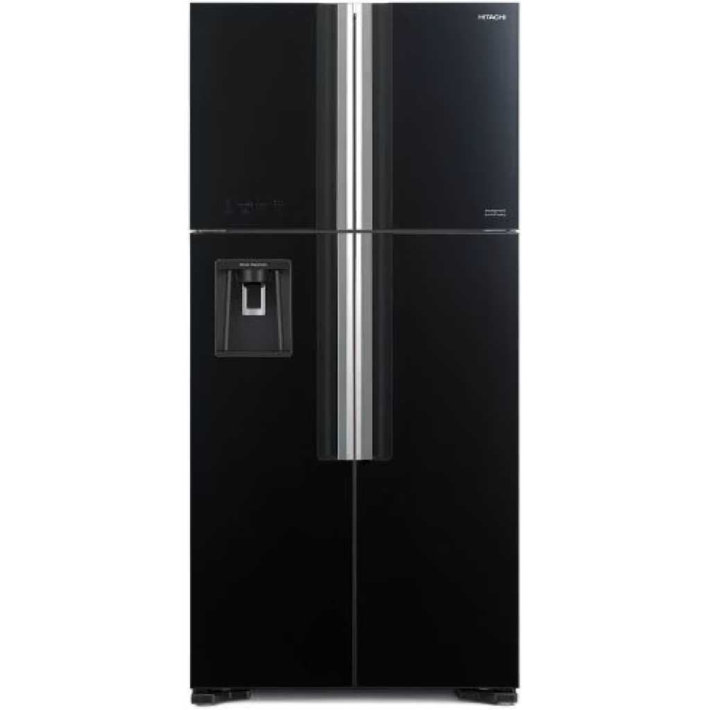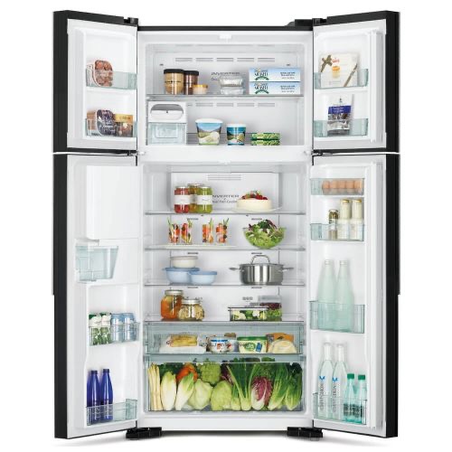Hitachi 600 – Litres French Door Refrigerator, Inverter Compressor + Water Dispenser RW800PUN7GGR – Glass Black Hitachi French Door Refrigerator RW800PUN7GGR – 600L – Glass Black Big French Standard The Hitachi Solution for Powerful Refrigeration Plus Exceptional Energy Saving. Dual Fan Cooling Dedicated Fans for each of the Compartments It provides optimum cooling in both the freezer and the refrigerator compartments, something a single fan can’t do. Improved Dual Fan Cooling ensures energy saving and powerful cooling, supported by the Eco Thermo-Sensor in each compartment detecting any temperature changes at all times. High Power Inverter Compressor Capable of providing exceptionally powerful cooling by generating a large volume of chilled air, as well as efficient low power cooling with microcomputer control. Dual Sensing Control Hitachi refrigerators have two Eco Thermo-Sensors, one in the freezer compartment and the other in the refrigerator compartment. The sensors detect any temperature changes separately to enable the ideal temperatures to be maintained in each of the compartments at all times. Energy Saving Controlling how much and to which compartment chilled air is delivered, it assures no wasted energy thus helping it acquire world top class energy saving ratings. Powerful Cooling Even if the ambient temperature reaches as high as 60°C, every corner inside the refrigerator is still thoroughly cooled. Cools Even at 60°C* Stabilizer Free Even without a special stabilizer, Hitachi’s inverter refrigerator can operate under wide voltage fluctuation Cools Under Wide Voltage Fluctuations 130v- 300v* Long Cool Keeper The temperature in the freezer compartment is maintained to keep food fresh in the event of a power cut. Cooling Retention 12 HOurs* even during power cut Fresh Select The Select Lever lets you adjust the inside temperature by switching between the two modes. Vegetable Mode For storage of easily damaged soft fruits and vegetables Organizes items by size Approx. 5 °C Dairy / Meat Mode Keeps meat and fish fresh Thaws frozen foods Rapidly cools drinks Approx. 1 °C Touch Screen Controller Flat glass panel controls let you change the settings with a simple touch. And a wipe is all it takes to clean the tempered glass surface. Tempered Glass Shelves Scratch-proof and heat-resistant, the tempered glass shelves can even hold up to 100kg* each. Tank Type Water Dispenser Enjoy Clean Water Just pour mineral or other purified water into the tank and cold water is automatically made for you. You can remove the water tank for easy cleaning. Touch Screen Controller Flat glass panel controls let you change the settings with a simple touch. And a wipe is all it takes to clean the tempered glass surface. Tempered Glass Shelves Scratch-proof and heat-resistant, the tempered glass shelves can even hold up to 100kg* each. Tech Spec Top Freezer Door 4 Door Series Big French Standard Glass Net Capacity (L) Total : 600 Dimensions (mm) Width : 855 Height : 1835 Depth with Handle : 737 Depth without Handle : 727 INVERTER × Dual Fan Cooling Refrigerator Compartment Fresh Select Tempered Glass Shelves Water Tank with Filter(Water Dispenser) LED Light Big, Moisture-Guard Vegetable Compartment Freezer Compartment Movable Twist Ice Tray Quick Freezing Tempered Glass Shelf LED Light General Features Dual Sensing Control (Eco Thermo Sensor) Water Dispenser Touch Screen Controller Nano Titanium Filter Door Alarm Common Features Refrigerant R-600a / CFC-Free / HFC-Free / No Frost / Mold proof Door Gasket Key Features: Hitachi 600 – Litres French Door Refrigerator, Inverter Compressor + Water Dispenser RW800PUN7GGR – Glass Black 600 Liters Capacity Inverter Compressor Dual Fan Cooling Glass Grey Finish Water Dispenser Quick Freezing Tempered Glass Shelves LED Light (Fridge and Freezer) Touch Controls Door Alarm Movable Twist Ice Tray Energy Saving