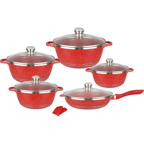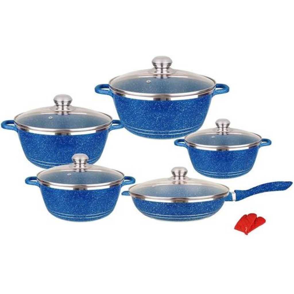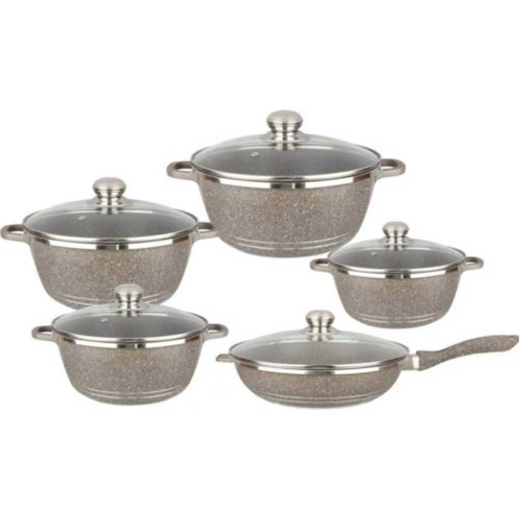 Key Features: Good Performance:Made of high-quality pressed aluminum with granite coating to provide highly scratch resistant durability and not easy to deform.Here‘s another benefit of aluminium:it heats up quickly and evenly,so you don‘t get the ‘hot spots‘. Superior Marble Stone Coating:Our granite frying pan and pot set adopts stone-derived,super non-stick coating,nonstick interior and exterior for easy cleaning.So these saucepans are ideal for creating healthy,low-oil alternatives to a variety of meals. Healthy Aluminum Body with Vented Lid:Transfer heat quickly,easy cooking.Free of BPA,lead and cadmium,.The ventilated glass lid allows steam to escape,and stop food from spilling,which means less clutter in your cooking space. Strong Practicality:Each piece of pots and pans set non stick is made with a flat bottom which allows it to be placed evenly over heat source suitable for gas,electric stove and ceramic hobs for everyday cooking.Package Include 1×10 pieces pots and pans set. What does this Cookware Set Include:Kitchen Cookware Set 10 Piece includes-28cm frying pan with lid,20cm,24cm,28cm and 32cm saucepans with lid for all your cooking needs.Ideal for cooking classics like Sausage and Bean Casserole or Chicken.