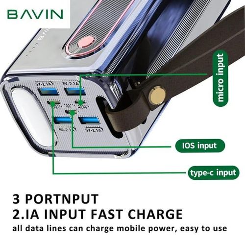 50000mAh Large Battery Capacity. Power bank Multiple Input & Output. Built-in Flashlight. Full Charge can Last up to 1 week. Suitable Use For Tablet , Cell Phones, Digi Cams and Gaming. Battery: Polymer Lithium Battery. Multiple Protection. Super Quick 22.5W Charge(5V/4.5A, 4.5V/5A). OverviewBavin PC066 Power Bank 50000mAh Large Battery Capacity Power Bank Multiple Input And Output w/ Built-in Flashlight Full Charge can Last Up To1week For Tablet Cell Phones Digi Cams And Gaming