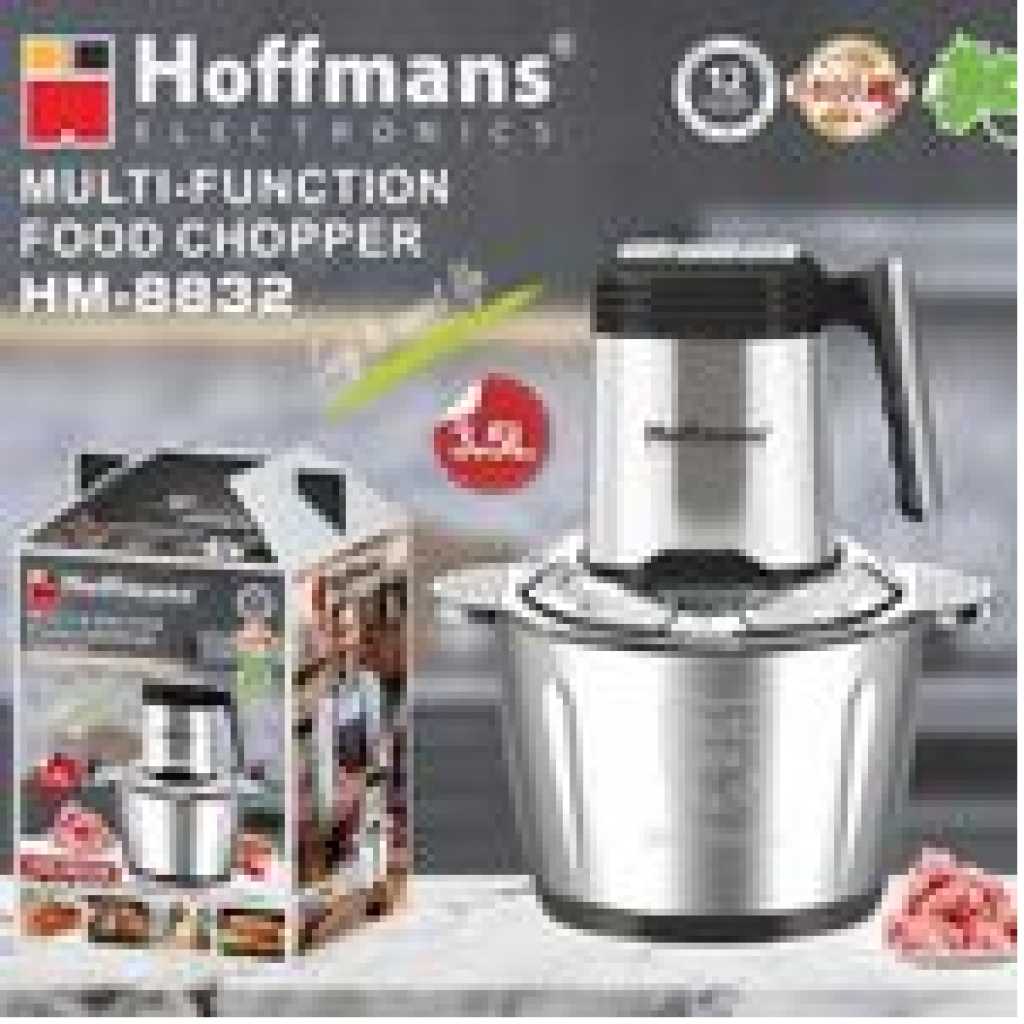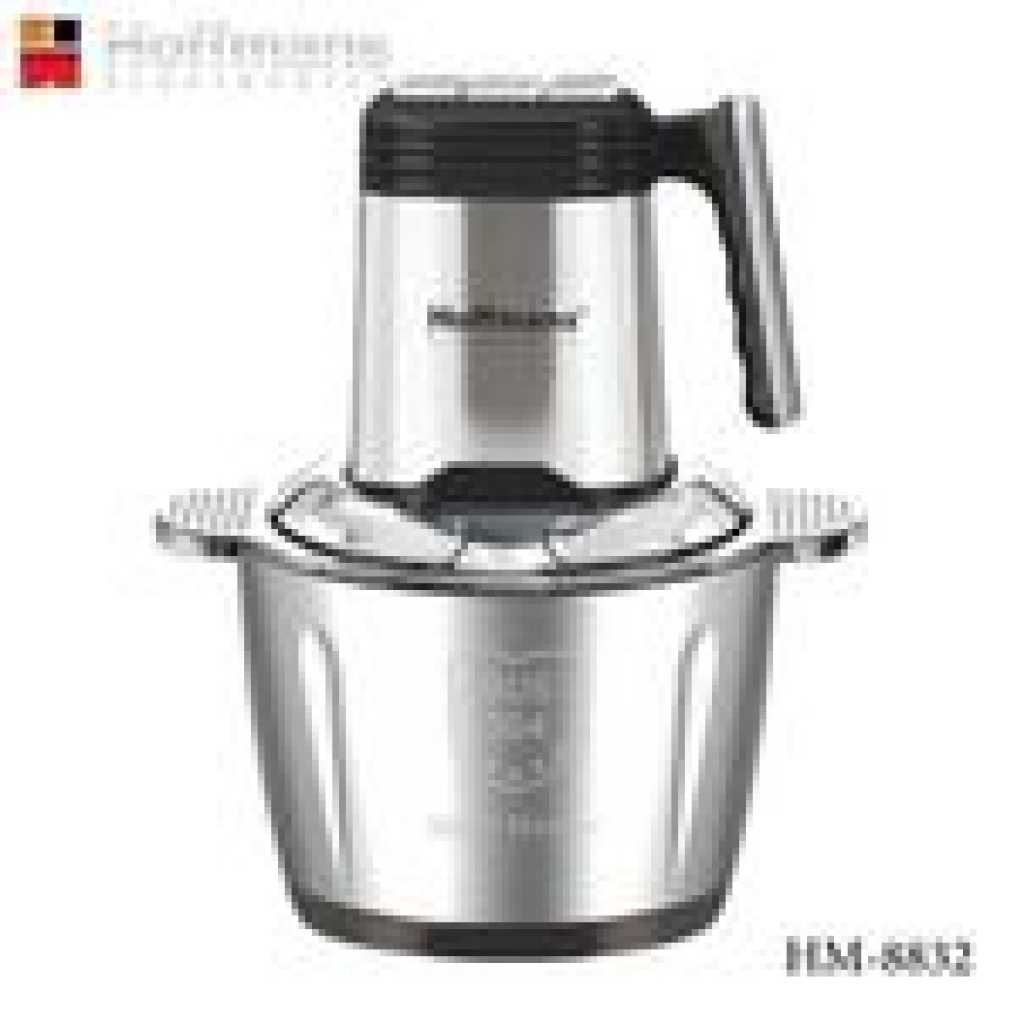 Compact stainless steel body and glass bowl design, nice appearance, elegant, easy to wash and operate. It has a durable metal-to-metal drive coupling system. Double stainless steel blade and non-slip rubber mats High/Med/Low three-speed option for a wide range of different ingredients. Suitable for: meat, fruit, nut, etc. Stainless steel material. Capacity: 3.5L Power: 1800W Model HM-8832