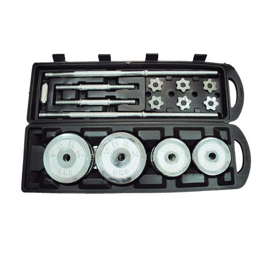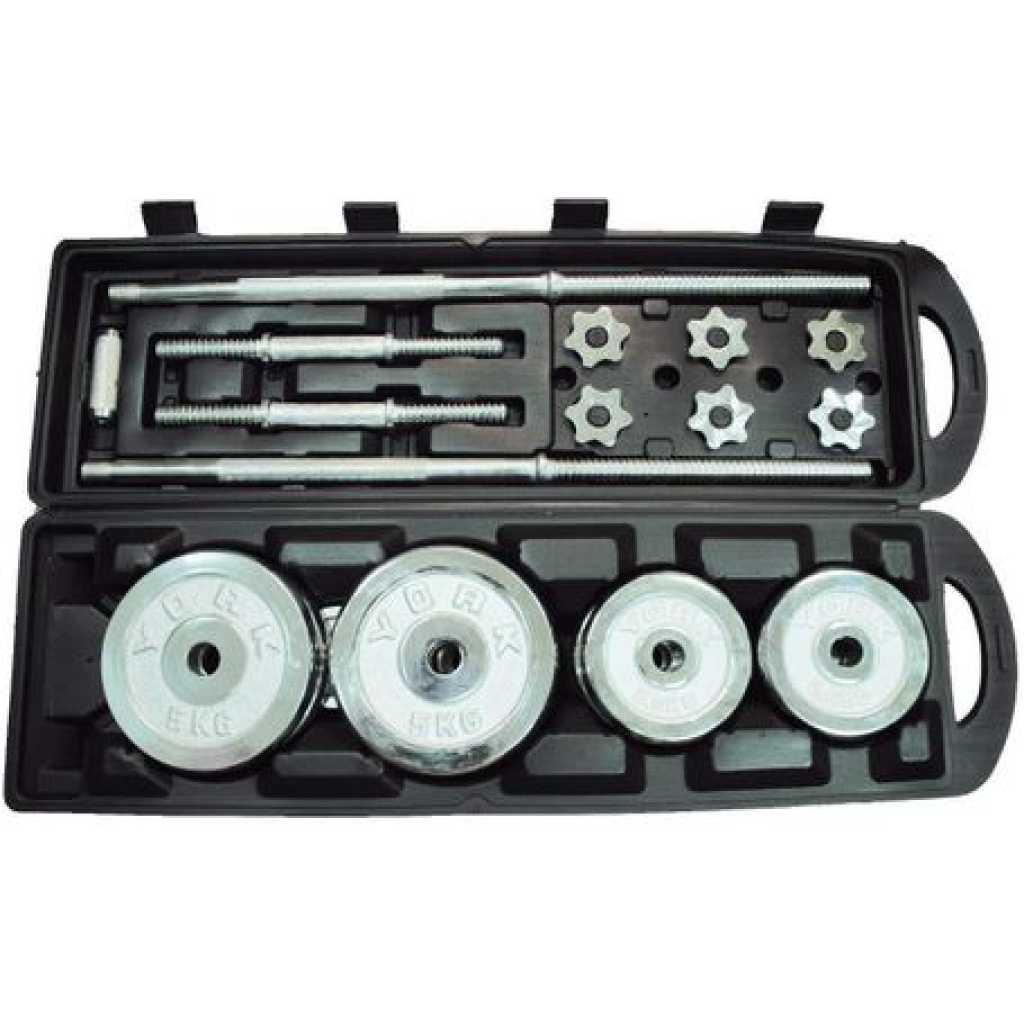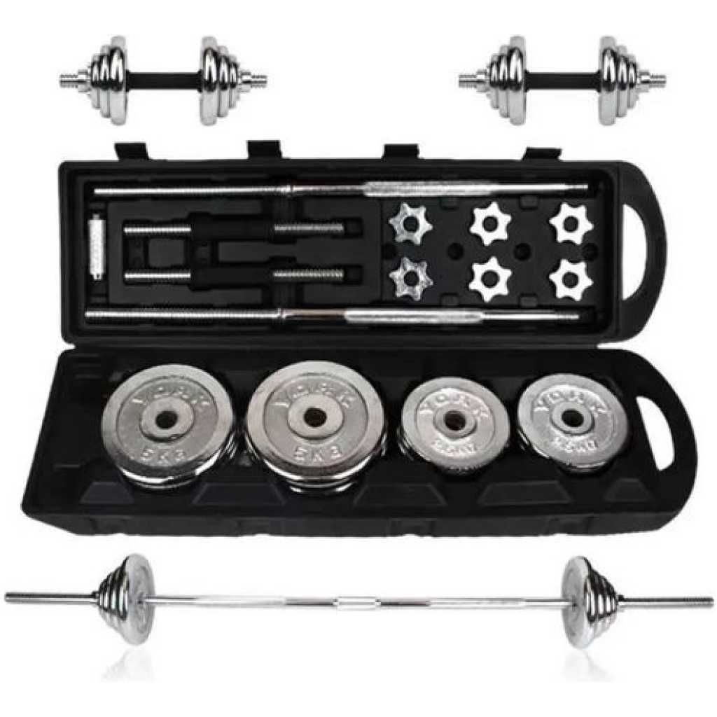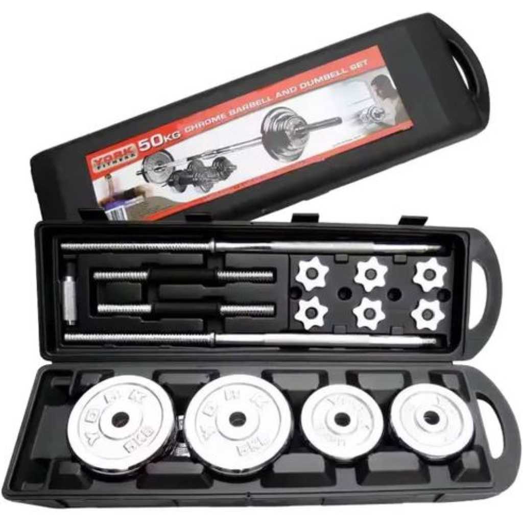Key Features: FITNESS EQUIPMENT COMBO: Package includes 4x5kg, 4×2.5kg, 6×1.25kg, 6×0.5kg weight plates, 2x35cm dumbbell handles, 1x120cm curl barbell (after assembly), 1x152cm straight barbell (after assembly), 1x connectors, 6 collars. Full set weighs 55kg (carry case included) PLATING ADJUSTABLE SET: Comes with chrome weight plates for maximum durability. Chrome handles are knurled for a secure, firm and non-slip grip. Also includes star-lock collars for easy weight changes CONNECTOR: The steel connector helps to turn two short barbells into one long barbell easily and quickly in mere seconds, providing variety to your workout routine. The dumbbell set is easy to combine with a weight bench, press bench, barbell rack or squat rack
