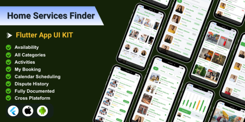 Home Services Finder Flutter UI Kit . Home Services Finder Flutter UI Kit for booking, provider management & seamless Android/iOS app experience.