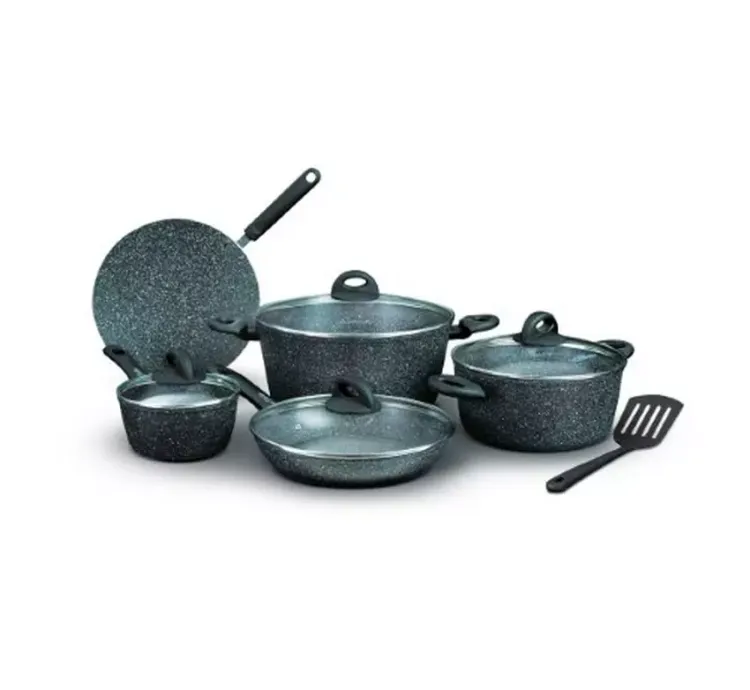 Homeway 10 Pcs Marble Cookware Set-Forged (Eternal Collection) – HW3696 5-layer non-stick marble coating Induction and gas stove compatible Soft-touch heat-resistant handles Ergonomic design for comfortable handling Includes various cookware pieces for versatile cooking Brand Key Features: 5-layer non-stick marble coating Induction and gas stove compatible Soft-touch heat-resistant handles Ergonomic design for comfortable handling Includes various cookware pieces for versatile cooking