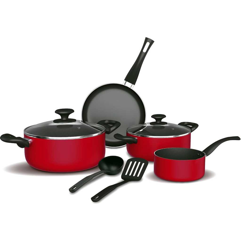 Homeway 8 PCS Non-Stick Cookware Set (28cm casserole with LID, 24cm casserole with LID, 16cm saucepan, 26cm frypan, Nylon ladle, Nylon turner) – HW2600 Homeway Cookware Set Consists of 8 Pieces of Cooking Utensils to make your life in the Kitchen an easy task. 28cm and 24cm Casseroles take care of making Stew & Curry a walk in the park! 26cm Frying Pan hold heat longer and is lightweight. Nylon Ladle & Turner Helps you with Stirring and Flipping Dough based food, Veggies or Omelette. 16cm Saucepan help you take care of making sauces or gravies. With a little Oil on a 3 Layer, Non-stick coated surface you don’t have to worry about food sticking to the bottom of the surface. Induction Bottom makes these Cookwares ready to be used on an Induction Based Stove or a Normal Gas Stove. Key Features: 8 Piece 3 Layer Non-stick Coated Cookware Set 28cm and 24cm Casserole with Vented Glass Lid Lightweight 26cm Frying Pan Lightweight 16cm Sauce Pan Nylon Turner & Ladle for Stirring & Flipping Induction Bottom Soft Touch Handles