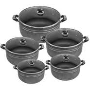Homeway Nonstick Casserole 28 CM- Induction Buttom – HW252 Key Features: Tornado 10 Piece Tornado Non-stick Saucepan Cookware Pots, Black. Die-cast coating Heavy gauge aluminum is super conductive for even heat distribution Easy clean exterior Bakelite handles Transparent lids with steam outlet holes 5 pcs nonstick cooking pots 5 pcs transparent glass lid
