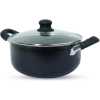 Homeway Nonstick Casserole 30cm- Induction Bottom – HW253 Key Features: 5 Pieces Of Non-stick Serving/Saucepans/Cookware – Black Soup Pot 20/24/28/30CM, 32CM Premium Die-Cast Aluminium Body Oven safe, Dishwasher safe, PFOA FREE Durable Non-Stick Coating Sturdy Tempered Glass Lids with Steam Vent Moulded Side Handles