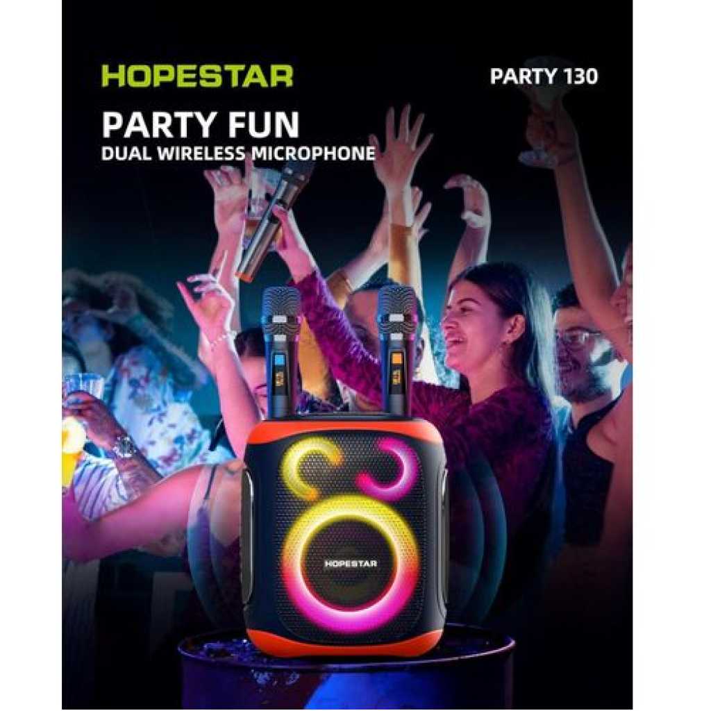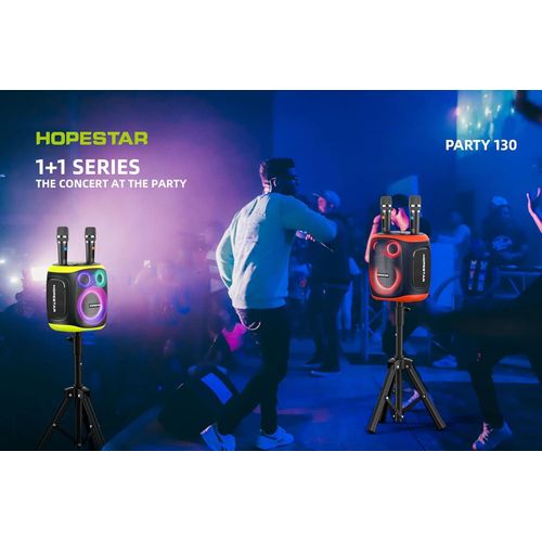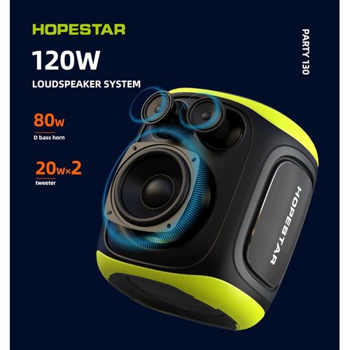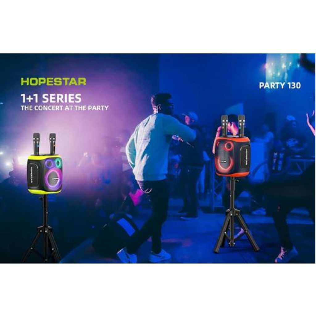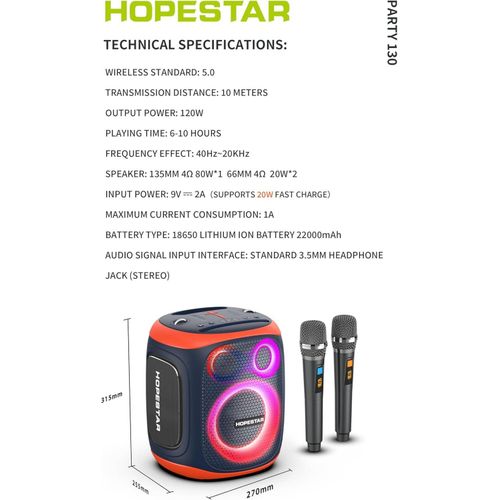 Hopestar 120W Party130 Wireless Portable Bluetooth Party Speaker with Two Microphones, Stereo Audio, TWS Connection, AUX/TF Card Karaoke Machine