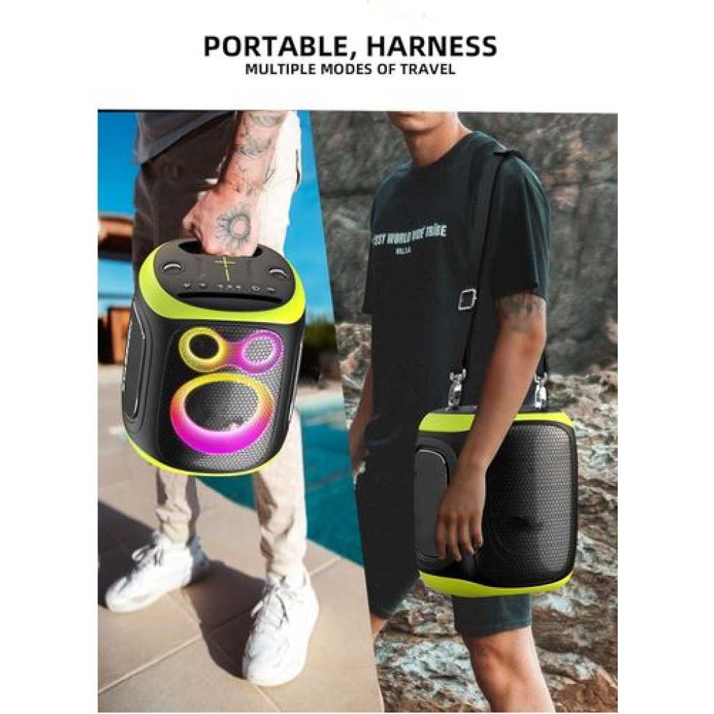 Elevate your party experience with the Hopestar Series 120W Portable Bluetooth Party Speaker. This powerful speaker boasts an impressive 120W output, ensuring immersive sound that will fill any room or outdoor space. Its sleek design features mesmerizing LED lights that create a captivating visual display, adding an extra layer of excitement to your gatherings. With two included microphones, you can effortlessly sing along or host karaoke nights. Enjoy seamless wireless connectivity via Bluetooth, allowing you to stream your favorite tunes from any compatible device. Lightweight and portable, this speaker is perfect for indoor or outdoor events, ensuring the party never stops. Crank up the volume and let the music take center stage with the Hopestar Series 120W Portable Bluetooth Party Speaker. Key Features: Dual Wireless Microphones: Enjoy karaoke nights or sing along with your favorite tunes using the two included microphones for duets and performances. Powerful Sound: With 120W of booming audio output, this party speaker delivers room-filling sound for indoor and outdoor gatherings. Bluetooth Connectivity: Stream music wirelessly from your smartphone, tablet or other Bluetooth-enabled devices within a 33ft range. Light Show: Liven up the party with the vibrant LED lights that pulse and dance in sync with the beat. Portable Design: The compact size and rechargeable battery allow you to take the fun on the go, perfect for tailgating, camping, or beach trips.