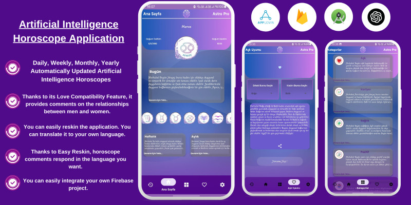 Horoscope Mobile Application. Horoscope App That Always Makes Different Interpretations, Automatically Updated with Artificial Intelligence in Every Category
