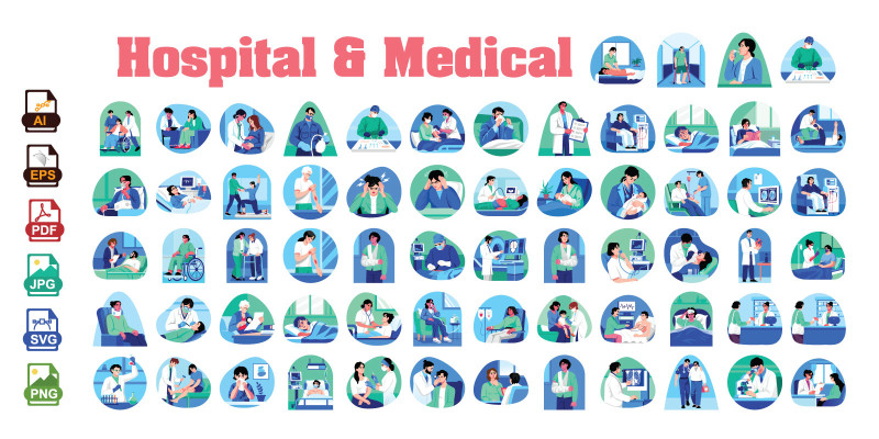 Hospital And Medical Vector Illustrations. Hospital & Medical Vector Illustrations | Doctor, Nurse, Checkup, Medical lab, Equipment | Illustrations Healthcare Clipart