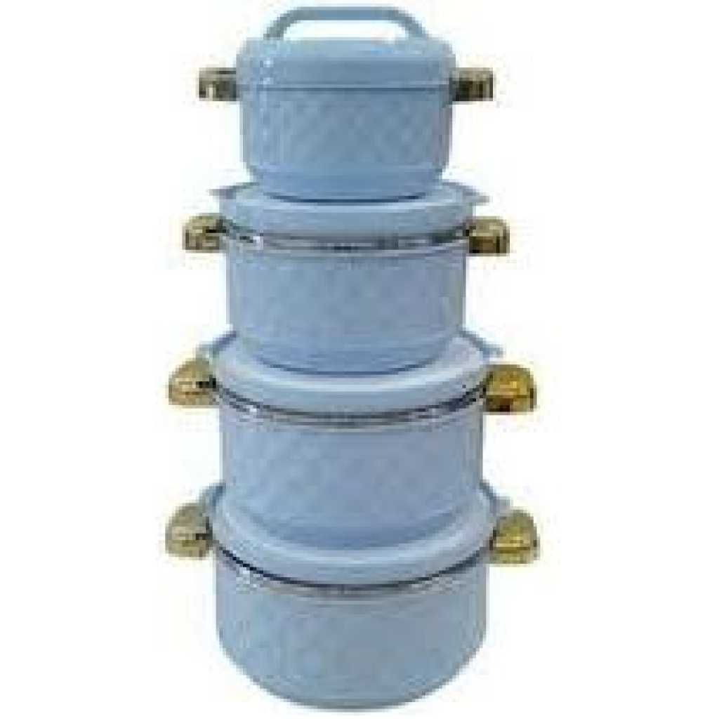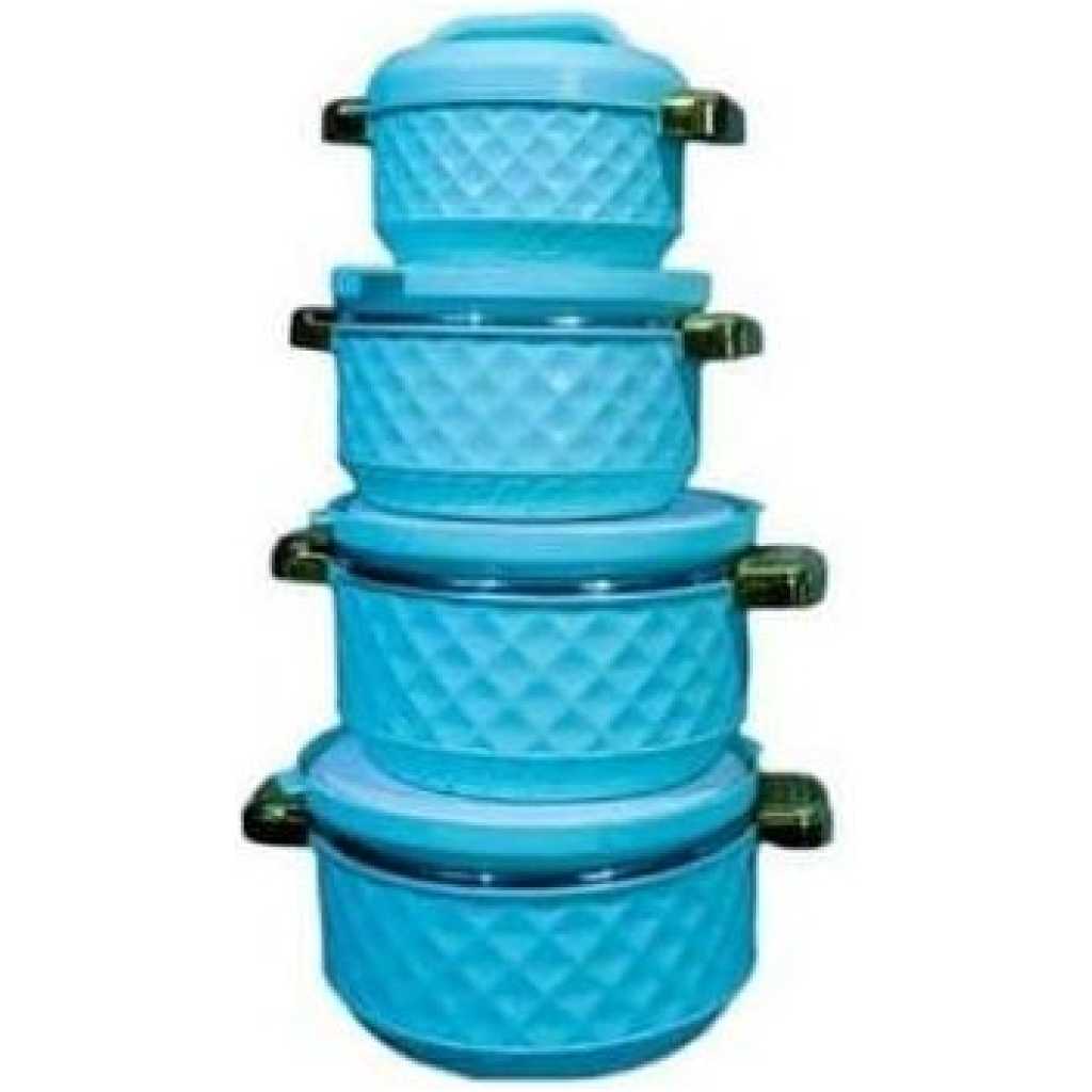 The thermo containers are made for preserving the temperature of hot and cold foods. The thick Double wall insulation ensures the food inside maintains it’s thermal temperature over a period of time allowing you to eat warm meals without having to reheat your food and therefore preserving healthy nutrients and tastes. Ideal for preparing meals in the morning and taking them to the office, or serving pre-prepared meals directly on the table or for storing excess foods away. Product dimensions 500ml insulated food casserole – 17 cm x 23.8cm x 7.5cm 1000ml insulated food casserole – 21 cm x 17 cm x 8.5cm 1500ml insulated food casserole – 24.5cm x 19.7cm x 9.7cm 2000ml insulated food casserole – 28.5cm x 23 cm x 10.3cm Key Features: Thick double wall insulation Stainless steel fixed inner casing Keeps food hot and fresh for 4-6 hours No re-heating of food required Twist locking lid with a stylish grip handle BPA free & FDA approved 4 Piece Set