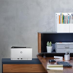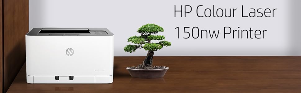 HP 150nw Colour Printer, Monochrome Wireless Printer – White Get productive print performance at an affordable price with an HP Color Laser 150NW. Produce high-quality color results, and print and scan from your phone. Dynamic security enabled printer. Only intended to be used with cartridges using an HP original chip. Cartridges using a non-HP chip may not work, and those that work today may not work in the future. HP Color Laser 150NW Features Legendary quality, surprisingly affordable price This surprisingly small laser delivers exceptional quality, page after page. Produce sharp text, bold blacks, and crisp color graphics. Rely on a high-performance laser printer at an affordable price. Designed to fit your space Work efficiently with a small, compact printer – world’s smallest in-class. Get print speeds up to 19/4 ppm. Easy mobile printing and scanning with HP Smart app Get simple setup, and print and scan from your phone, with the HP Smart app. Easily print from a variety of smartphones and tablets. Easily share resources – access and print with wireless and Ethernet networking. Connect your smartphone or tablet directly to your printer – and easily print without accessing a network. Uncompromising laser quality Get the quality you expect. Count on getting consistently superb prints from a surprisingly small laser. Sharp black text Produce sharp text, bold blacks, and crisp graphics. This printer is engineered to deliver consistent placement of toner particles to help work its best. Designed to fit your space You can fit this printer almost anywhere – it’s that small and compact. Fast printing Business doesn’t need to wait for your printer. Help maximize your up time with print speeds up to 21 ppm. Easy mobile printing with HP Smart app Get the app that’s designed to control your printer. Get simple setup, and print, scan, and copy from your phone, with the HP Smart app. Your device, your choice. Easily print documents, presentations, and other business materials directly from your smartphone or tablet. Extend your printing reach Keep your office connected. Built-in wireless capabilities let you easily access, print, and share resources on a network. No network, no problem. Easily print from your smartphone and tablet without a network – anywhere in your work-space . WiFi Direct® printing lets you connect your smartphone or tablet directly to your printer. From the manufacturer
