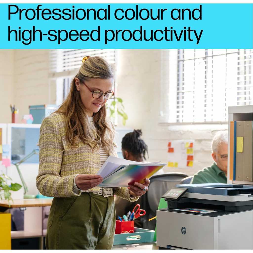 Key Features: Designed for business work teams that need professional performance with fast, high-quality two-sided color printing with scanning and copying, plus award-winning reliability in a compact design. High-speed, automatic two-sided color printing with scanning and copying. Experience high-speed, automatic, two-sided color printing up to 26 pages per minute (Letter) /25 pages per minute (A4). Performance you can count on page after page with award-winning reliability. Rely on low maintenance printing to avoid downtime and stay focused on your business. Protect your data and documents with HP Wolf Pro Security. Professional level printer security with preconfigured settings mean it’s ready for business. Compact size with energy saving technology to optimize energy use. Trim your paper use. Default duplex setting prints on both sides of each page.