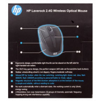 HP Laverock 2.4G Wireless Optical Mouse HP Laverock Wireless Optical Mouse allows you to enjoy the precision, style & comfort and is the perfect companion for the person on the go! And our incomparably low prices sweeten the offer for this exceptional product! Features Ergonomic design, suitable for right-handed use 5 button design: A online gamer’s best tool (A forward and backward button is set on the left) Rubber scroll wheel, which can be scrolled without slipping; Moderate hardness and softness It goes into sleep mode automatically when not in use; Energy saving – The electric current for working is only 10mA 2.4GHZ wireless technology; Two-way transmission; 16 groups working channels; Automatic frequency-hopping; Anti-jamming capability