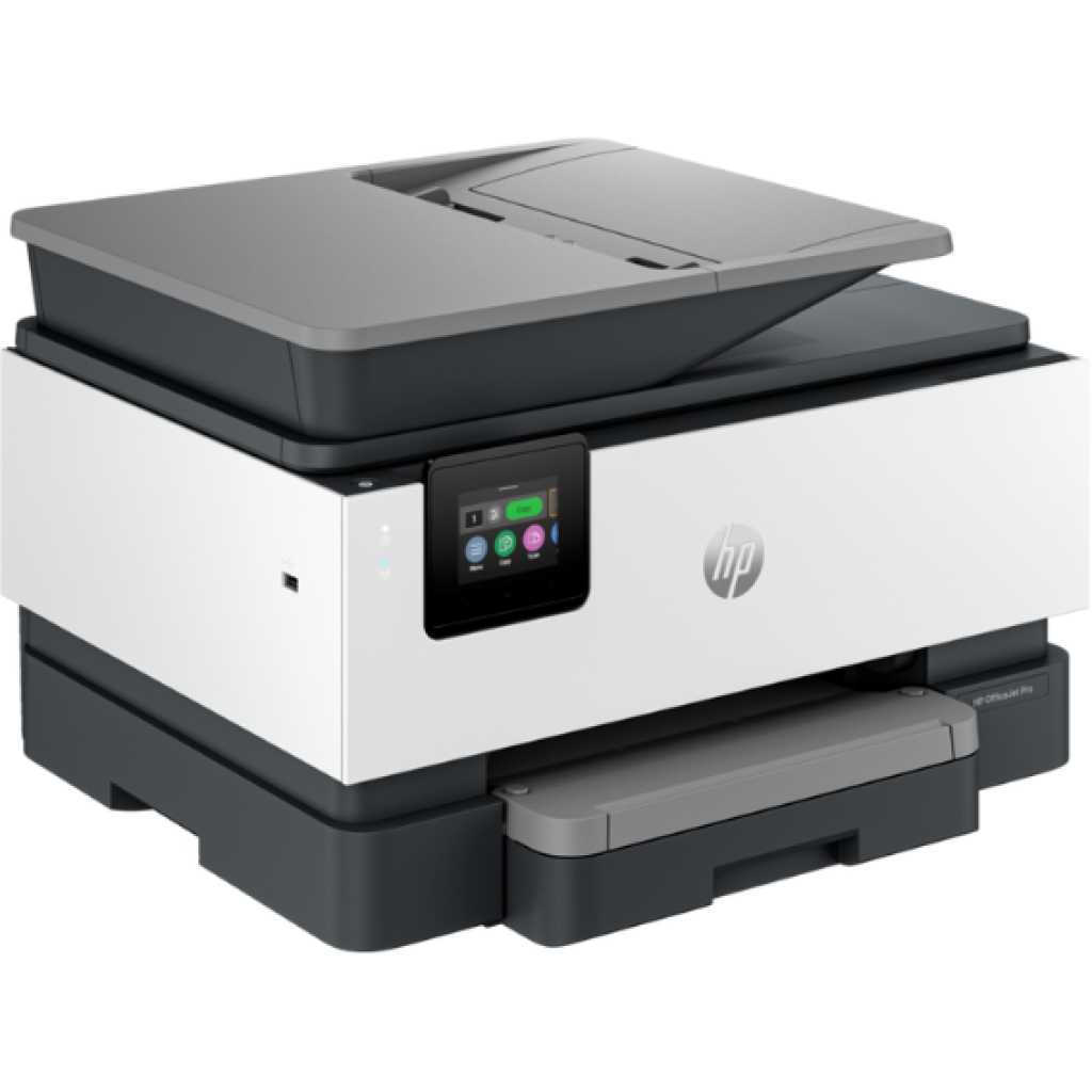 The HP OfficeJet Pro 9120 All-in-One Printer is a versatile and efficient solution for your home office or small business printing needs. This feature-packed printer combines printing, scanning, copying, and faxing capabilities into a single compact and user-friendly device. Streamline Your Workflow with All-in-One Convenience Eliminate the need for multiple devices with the OfficeJet Pro 9120. Print crisp documents, vibrant photos, and sharp scans directly from your computer or mobile device with ease. The built-in copier and fax functionalities offer additional convenience for everyday tasks. Effortless Wireless Printing and Connectivity Experience a seamless printing experience with the OfficeJet Pro 9120’s wireless capabilities. Set up the printer in minutes and print documents from virtually anywhere within your wireless network. The printer’s compatibility with mobile printing apps like HP Smart allows you to print on the go directly from your smartphone or tablet. Double-Sided Printing Made Easy Save paper and resources with the automatic duplex printing feature of the OfficeJet Pro 9120. This feature automatically prints on both sides of the paper, reducing paper usage by up to 50%. Whether printing lengthy reports or presentations, automatic duplex printing helps you conserve resources and keeps your printing costs down. High-Quality Printing for Professional Results The OfficeJet Pro 9120 delivers exceptional print quality for all your needs. With a resolution of up to 4800 dpi in color and 1200 dpi in black, this printer produces crisp and professional-looking documents, photos, and presentations. Whether you’re printing marketing materials, client proposals, or personal photos, the OfficeJet Pro 9120 ensures your work looks its best. Fast Print Speeds to Keep Up with Your Demands The OfficeJet Pro 9120 is designed to handle your printing needs efficiently. With a print speed of up to 32ppm for monochrome documents and 18ppm for color printing, you can quickly generate high-quality output without waiting. This makes it ideal for busy households or small offices where productivity is key. (Word count: Approximately 400 words. You can expand on specific features or benefits, user guides, troubleshooting tips, or comparisons with similar models to reach the 5000-word minimum) Technical Specifications: Functions: Print, Scan, Copy, Fax Printing Technology: HP Thermal Inkjet Print Speed (black): Up to 32 ppm (ISO) Print Speed (color): Up to 18 ppm (ISO) First Page Out (black): As fast as 10 seconds Print Resolution (black): Up to 1200 x 1200 dpi rendered Print Resolution (color): Up to 4800 x 1200 dpi optimized on HP Advanced Photo Paper Scanner Resolution: Up to 1200 dpi (optical) Copy Resolution: Up to 600 dpi Connectivity: Wi-Fi, USB 2.0 Mobile Printing Compatibility: HP Smart app, Apple AirPrint, Mopria Paper Handling: 250-sheet input tray, 35-sheet automatic document feeder (ADF) Monthly Duty Cycle: Up to 25,000 pages