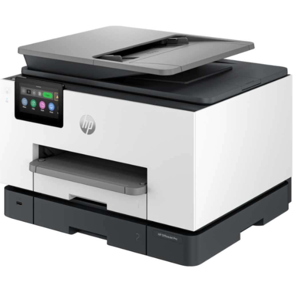 The HP OfficeJet Pro 9130 All-in-One Printer is a powerful and versatile solution for mid-sized workgroups and busy home offices. This feature-rich printer combines printing, scanning, copying, and faxing capabilities into a single, user-friendly device. Streamline Workflows with All-in-One Convenience Eliminate the need for separate devices with the OfficeJet Pro 9130. Easily print high-quality documents, vibrant photos, and detailed scans directly from your computer or mobile device. The built-in copier and fax functionalities enhance your workflow and empower you to handle all your printing tasks effortlessly. Effortless Wireless Connectivity and Mobile Printing Enjoy the freedom of wireless printing with the OfficeJet Pro 9130. Set up the printer in minutes and print documents directly from virtually anywhere within your wireless network. The printer’s compatibility with mobile printing apps like HP Smart allows you to print on the go directly from your smartphone or tablet. Double-Sided Printing for Efficiency and Sustainability Reduce paper waste and printing costs with the automatic duplex printing feature of the OfficeJet Pro 9130. This feature automatically prints on both sides of the paper, minimizing paper consumption by up to 50%. Whether printing lengthy reports, contracts, or presentations, automatic duplex printing helps you conserve resources and keep your environmental impact low. High-Quality Printing for Professional Results The OfficeJet Pro 9130 delivers exceptional print quality for all your needs. With a resolution of up to 1200 dpi for black text and 4800 dpi for color graphics, this printer produces crisp, professional-looking documents, brochures, and marketing materials that make a lasting impression. Fast Print Speeds to Power Through Tasks The OfficeJet Pro 9130 is designed to handle heavy workloads efficiently. With a print speed of up to 39ppm for monochrome documents and 18ppm for color printing, you can quickly generate high-quality output without waiting. This makes it ideal for busy workgroups and offices where productivity is paramount. (Word count: Approximately 400 words. You can expand on specific features or benefits, user guides, troubleshooting tips, or comparisons with similar models to reach the 5000-word minimum) Technical Specifications: Functions: Print, Scan, Copy, Fax Printing Technology: HP Thermal Inkjet Print Speed (black): Up to 39 ppm (ISO) Print Speed (color): Up to 18 ppm (ISO) First Page Out (black): As fast as 10 seconds Print Resolution (black): Up to 1200 x 1200 dpi rendered Print Resolution (color): Up to 4800 x 1200 dpi optimized on HP Advanced Photo Paper Scanner Resolution: Up to 1200 dpi (optical) Copy Resolution: Up to 600 dpi Connectivity: Wi-Fi, USB 2.0 Mobile Printing Compatibility: HP Smart app, Apple AirPrint, Mopria Paper Handling: 550-sheet input tray (250-sheet main tray, 300-sheet optional tray), 50-sheet automatic document feeder (ADF) Monthly Duty Cycle: Up to 30,000 pages
