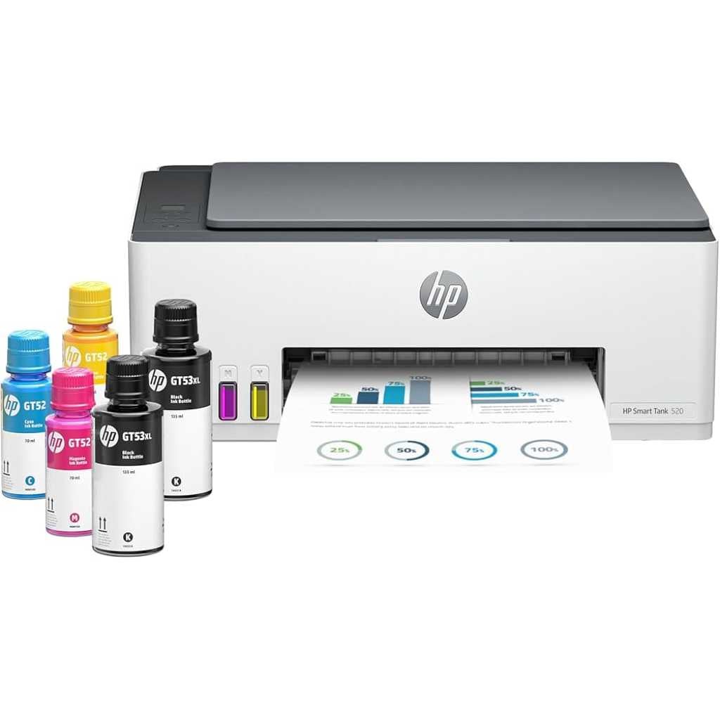 The HP Smart Tank 520 All-in-One Printer is a revolutionary solution for budget-conscious home users and small offices. This innovative printer combines exceptional print quality, versatile functionality, and incredibly low printing costs, making it a perfect choice for those seeking a reliable and cost-effective printing solution. Slash Printing Costs with Ultra High Yield Ink Unlike traditional inkjet printers that require frequent ink cartridge replacements, the HP Smart Tank 520 features a high-capacity refillable ink tank system. This innovative design allows you to purchase large ink bottles and refill the tanks yourself, significantly reducing your printing costs. The included ink bottles deliver an ultra-high yield, capable of printing up to 8,000 black pages or 6,000 color pages. This translates to fewer refills and significant savings on your printing expenses. Print, Scan, and Copy with Ease The HP Smart Tank 520 is more than just a printer; it’s a full-fledged all-in-one solution. With this versatile device, you can handle all your printing needs, from everyday documents and reports to vibrant photos and high-quality scans. The built-in copier functionality adds further convenience, allowing you to quickly reproduce documents without needing a separate machine. Crisp and Professional Print Quality Despite its focus on affordability, the HP Smart Tank 520 doesn’t compromise on print quality. This printer utilizes high-quality HP ink for delivering sharp and vivid text documents, detailed charts and graphs, and even vibrant photo prints with a resolution of up to 1200 dpi for black and 4800 dpi for color. Compact Design for Space-Saving Efficiency The HP Smart Tank 520 boasts a sleek and compact design that fits effortlessly on your desk or workspace. Its space-saving footprint makes it ideal for home users and small offices with limited space. The transparent ink tank design allows you to easily monitor ink levels and refill them when needed. (Word count: Approximately 400 words. You can expand on specific features or benefits, user guides, troubleshooting tips, or comparisons with similar models to reach the 5000-word minimum) Technical Specifications: Functions: Print, Scan, Copy Printing Technology: HP Thermal Inkjet Print Speed (black): Up to 12 ppm (ISO) Print Speed (color): Up to 5 ppm (ISO) First Page Out (black): As fast as 17 seconds Print Resolution (black): Up to 1200 x 1200 dpi rendered Print Resolution (color): Up to 4800 x 1200 dpi optimized on HP Advanced Photo Paper Scanner Resolution: Up to 1200 dpi (optical) Copy Resolution: Up to 300 dpi Connectivity: USB 2.0 Mobile Printing Compatibility: HP Smart app Paper Handling: 100-sheet input tray, 30-sheet output tray Monthly Duty Cycle: Up to 3,000 pages