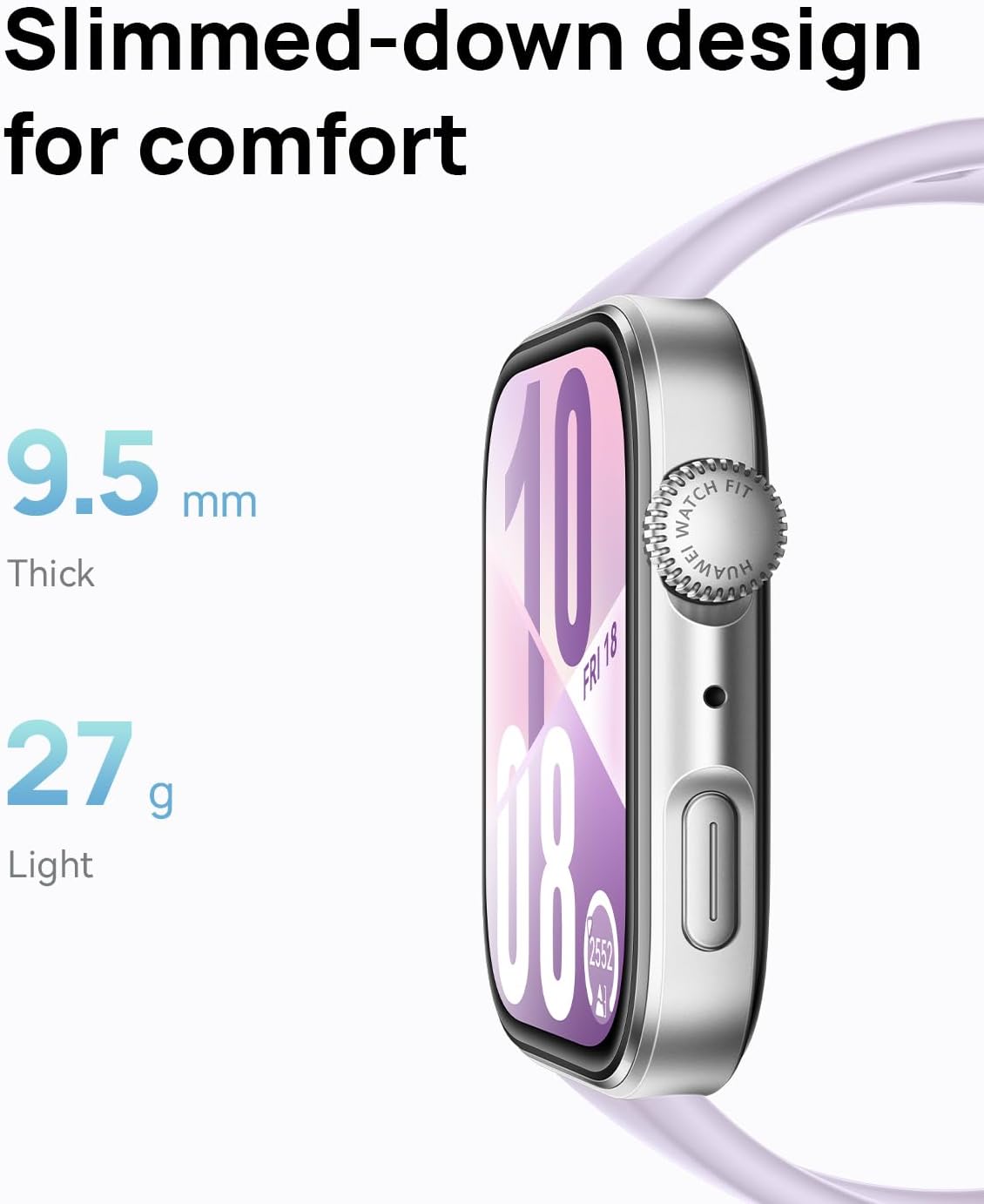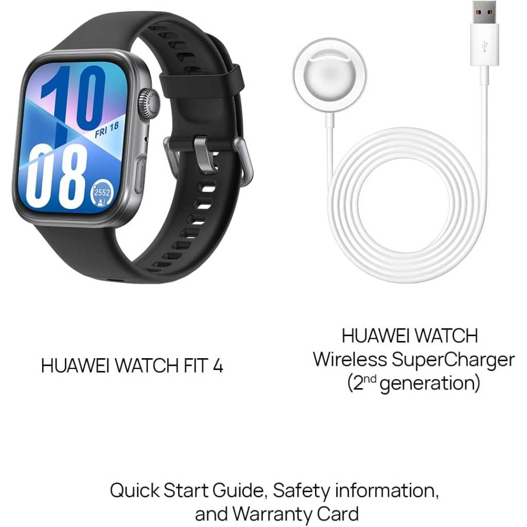 Slimmed-down Design for Comfort: Sleek, stylish, and featherlight at just 27 g and 9.5 mm thick. The 3D wing-like design adds a touch of elegance that moves with you, whether you’re at work or working out Up to 10-day Battery Life: Charge for just 10 minutes to get a full day’s use. With the 2nd-gen Wireless SuperCharger, you’ll enjoy up to 10 days of battery life for uninterrupted performance Broadly Compatible: Pair with both iOS and Android devices to stay connected on your terms. Receive notifications, sync your data, and track fitness goals with ease Wrist-based Health Insights: Access HUAWEI’s Health Insights app for tailored guidance—from stress and recovery tips to sleep and workout optimisation—all based on your real-time health data Precise Positioning: The advanced Sunflower Positioning System detects your activity type and delivers ultra-precise tracking for walking, running, cycling, hiking and more Operating System HarmonyOS Memory Storage Capacity 4 GB Special Feature Touchscreen, Lightweight, Multisport Tracker, Activity Tracker, Always On Display Battery Capacity 400 Milliamp Hours Connectivity Technology Bluetooth Wireless Communication Standard Bluetooth Battery Cell Composition Lithium Polymer GPS Built-in GPS Screen Size 1.82 Inches Brand HUAWEI