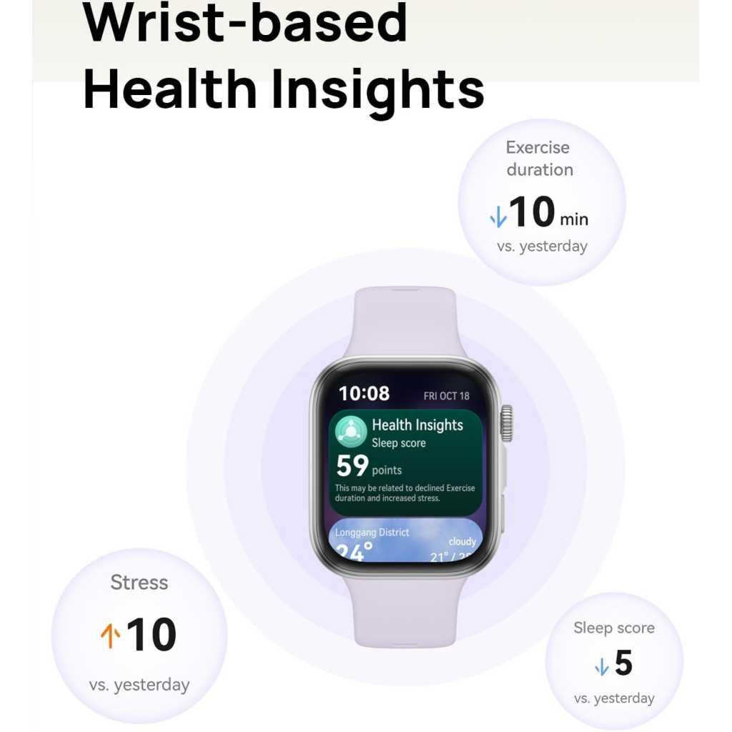 Key Features: Slimmed-down Design for Comfort: Sleek, stylish, and featherlight at just 27 g and 9.5 mm thick. The 3D wing-like design adds a touch of elegance that moves with you, whether you’re at work or working out Up to 10-day Battery Life: Charge for just 10 minutes to get a full day’s use. With the 2nd-gen Wireless SuperCharger, you’ll enjoy up to 10 days of battery life for uninterrupted performance Broadly Compatible: Pair with both iOS and Android devices to stay connected on your terms. Receive notifications, sync your data, and track fitness goals with ease Wrist-based Health Insights: Access HUAWEI’s Health Insights app for tailored guidance—from stress and recovery tips to sleep and workout optimisation—all based on your real-time health data Precise Positioning: The advanced Sunflower Positioning System detects your activity type and delivers ultra-precise tracking for walking, running, cycling, hiking and more