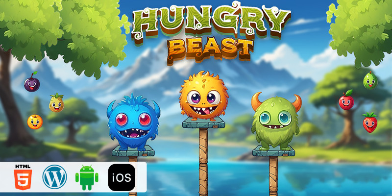 Hungry Beast - HTML5 Construct3 Game. Explore the forest to collect fruits to feed cute demon.