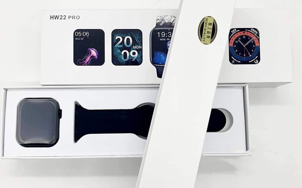 HW22 Pro Max- Smart Watch Series 6, Bluetooth Call Waterproof with Silicone Band and Full Touch Screen, 44MM, Blue. PLEASE CHARGE THE WATCH FOR ATLEAST 12 HOURS BEFORE FIRST USE. ✔️FULL TOUCH SCREEN: 1.7-inch full touch color screen with waterproof design you can wear it to wash hands, walk in the rain, bath or swim, etc. (except deep diving and hot water). ✔️LONG BATTERY LIFE: Built-in 210mAh large battery, a full charge only takes 2-3 hours can be used normally for 10 days, standby for 45 days. ✔️MULTIPLE SPORT MODES: The fitness watch has nine sport modes to select which are walk, run, hike, cycle, treadmill, fitness, mountain climbing, spinning and yoga. You can record and view the real-time data in exercise and you can open GPS sport mode on your phone to record your sport routes in real time. ✔️CAPABILITIES: After connecting your phone and smart watch via Bluetooth, the smart watch will vibrate to remind you of incoming calls, SMS and SNS messages (Facebook, Twitter, Instagram, Skype, Whatsapp, Linkedin, Messenger, etc.) No phone calls or text messages will be lost. Note: For Samsung phones, because some models are not compatible.