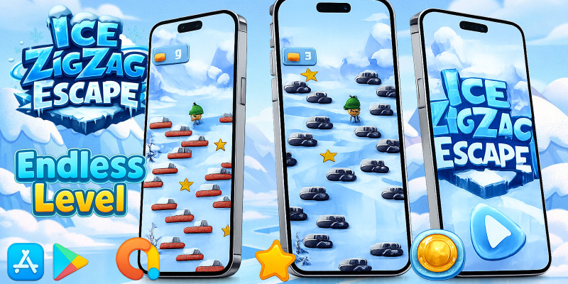Ice ZigZag Escape Casual Game Unity. Ice ZigZag Escape Unity Game Source Code! Perfect for mobile, this game is optimized for Android & iOS. easy to reskin