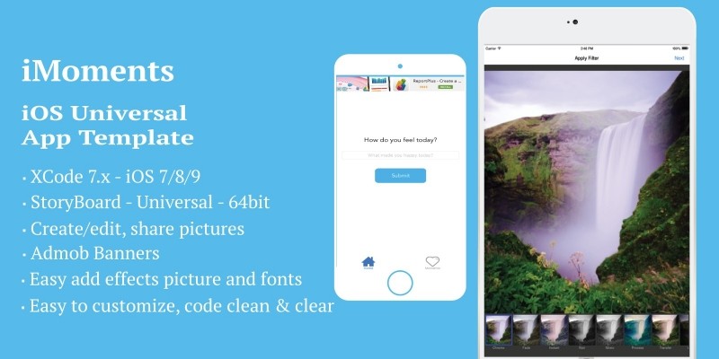 iMoments - iOS App Template. iMoments is an application help you keep your wonderful moments, use many functions beautiful efflect pictures and fonts
