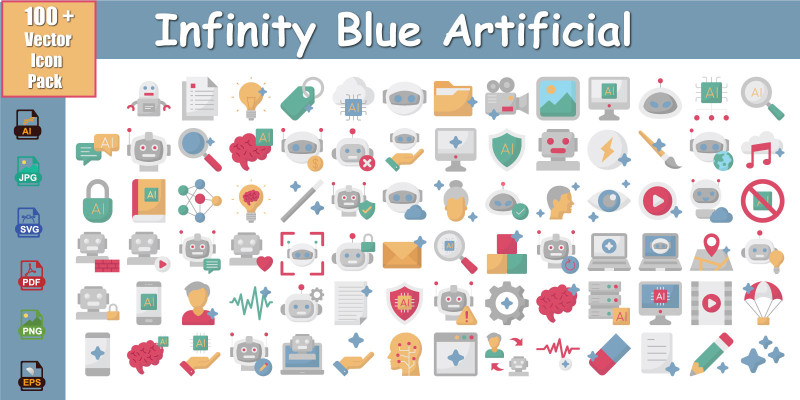 Infinity Blue Artificial Icons Pack . Infinity Blue Artificial icons pack featuring modern AI, technology, and futuristic digital innovation symbols.