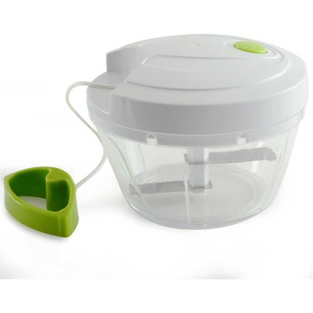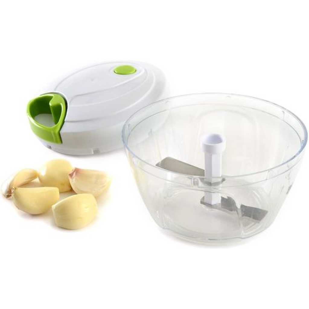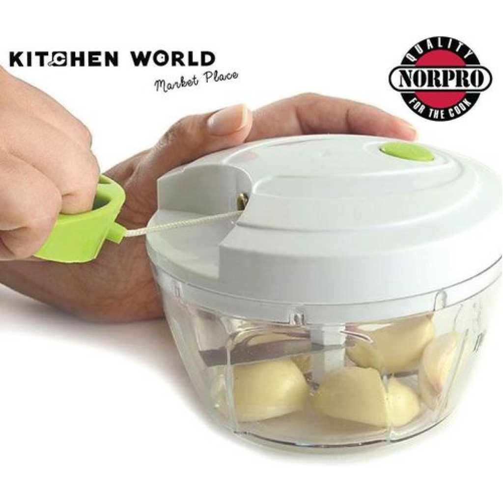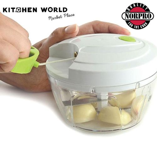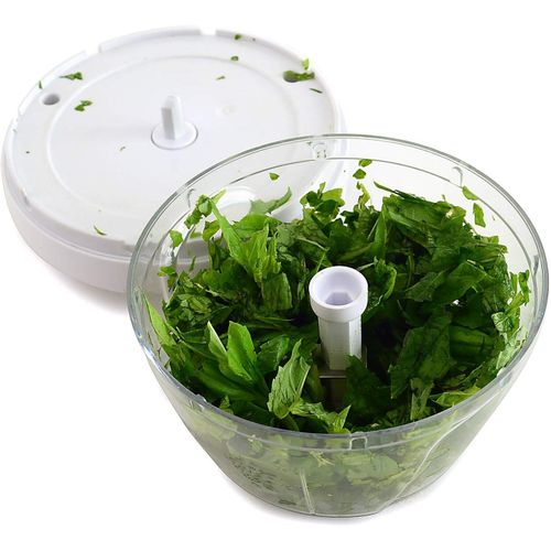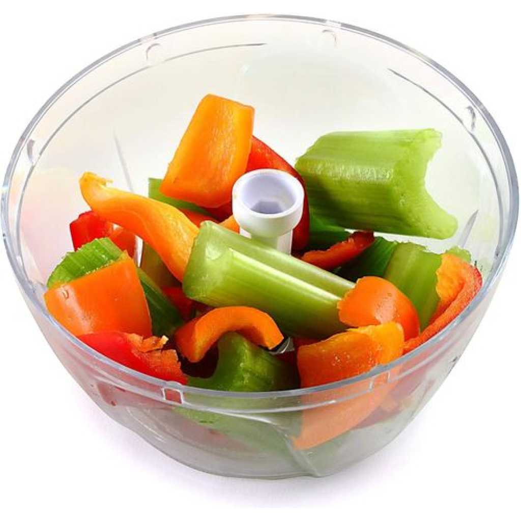 Measures: 3.25″ x 4.75″ x 4.75″ / 8cm x 12cm x 12cm Capacity: 2C / 16oz Ideal for onions, nuts, garlic, vegetables, fruits & making salsa! Simply pull the cord for quick chopping, mincing and mixing of various ingredients: onion, garlic, chilies, herbs and more! Stainless steel blades cut in both directions and are removable for thorough cleaning. Non-slip base. Helpful hints: cut vegetables, fruits or herbs into smaller pieces and place into the bowl. Caution: Blades are very sharp. Use, clean and store with extra care. Hand washing recommended. Key Features: 1.5 Cups/12 ounces Stainless steel blades Easy view bowl collects food Great for chopping onions, garlic, chilies, herbs and more Hand washing recommended